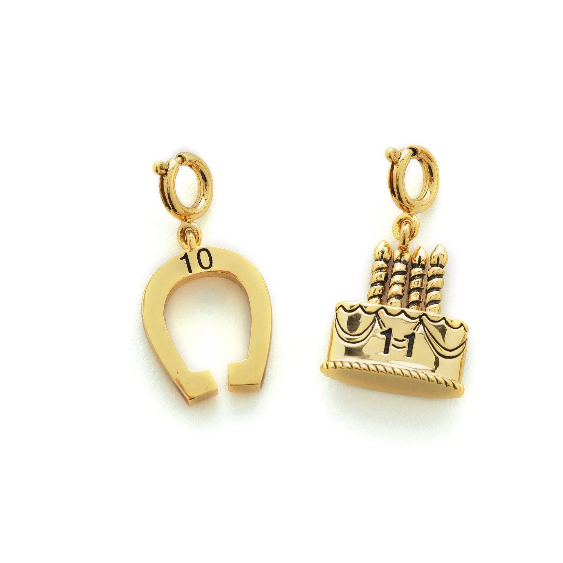 - Showcases A Golden Birthday Cake Charm Numbered To Represent Age
