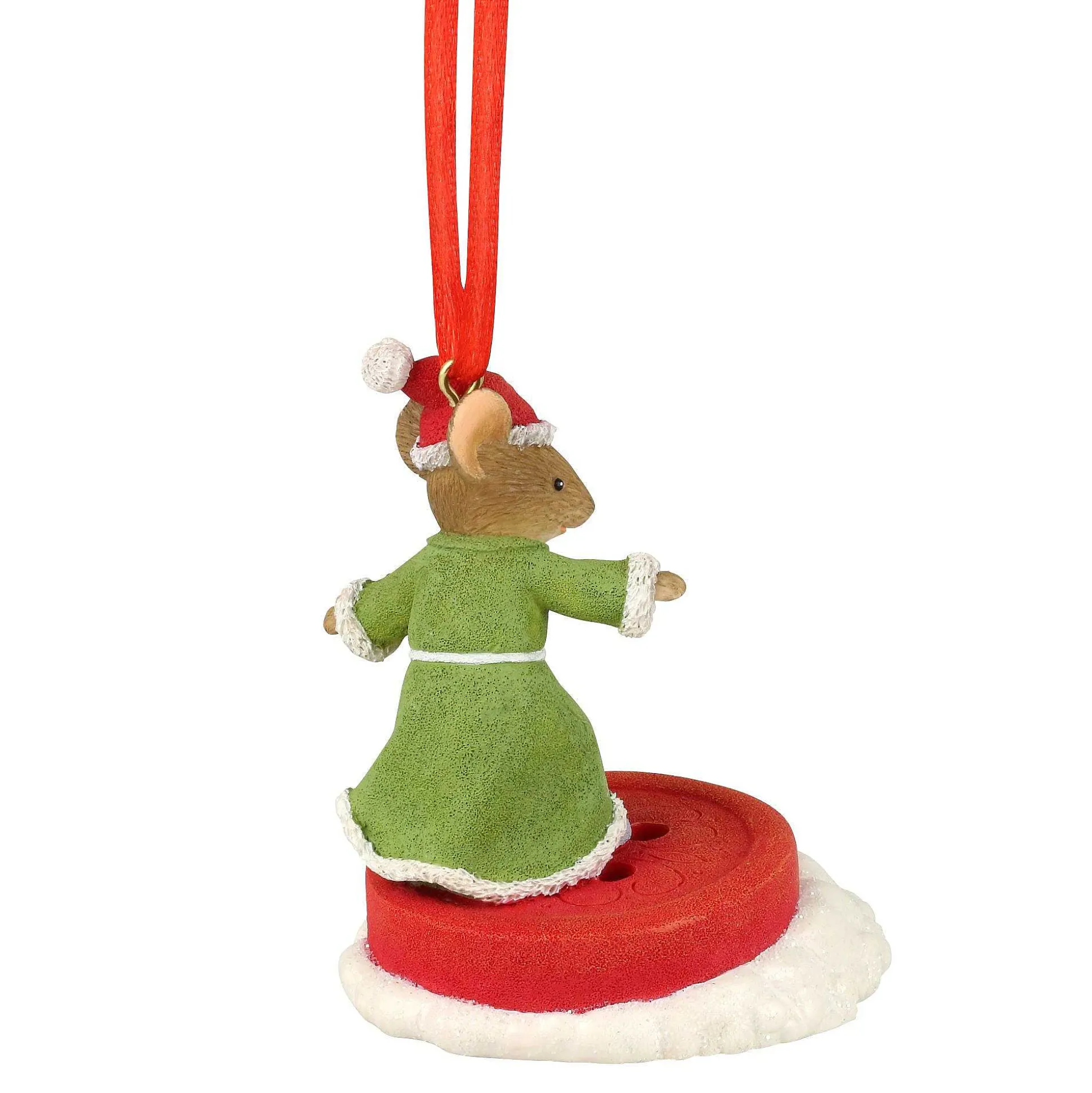 Wearing A Green Nightgown, Someone Is Out Past Bedtime! When No Other Creatures Are Stirring, You Can Count On This Mouse Ornament To Be Sledding Across Your Christmas Tree. Santa Hat Billowing In The Breeze, This Mouse Snowboards Atop A Button.