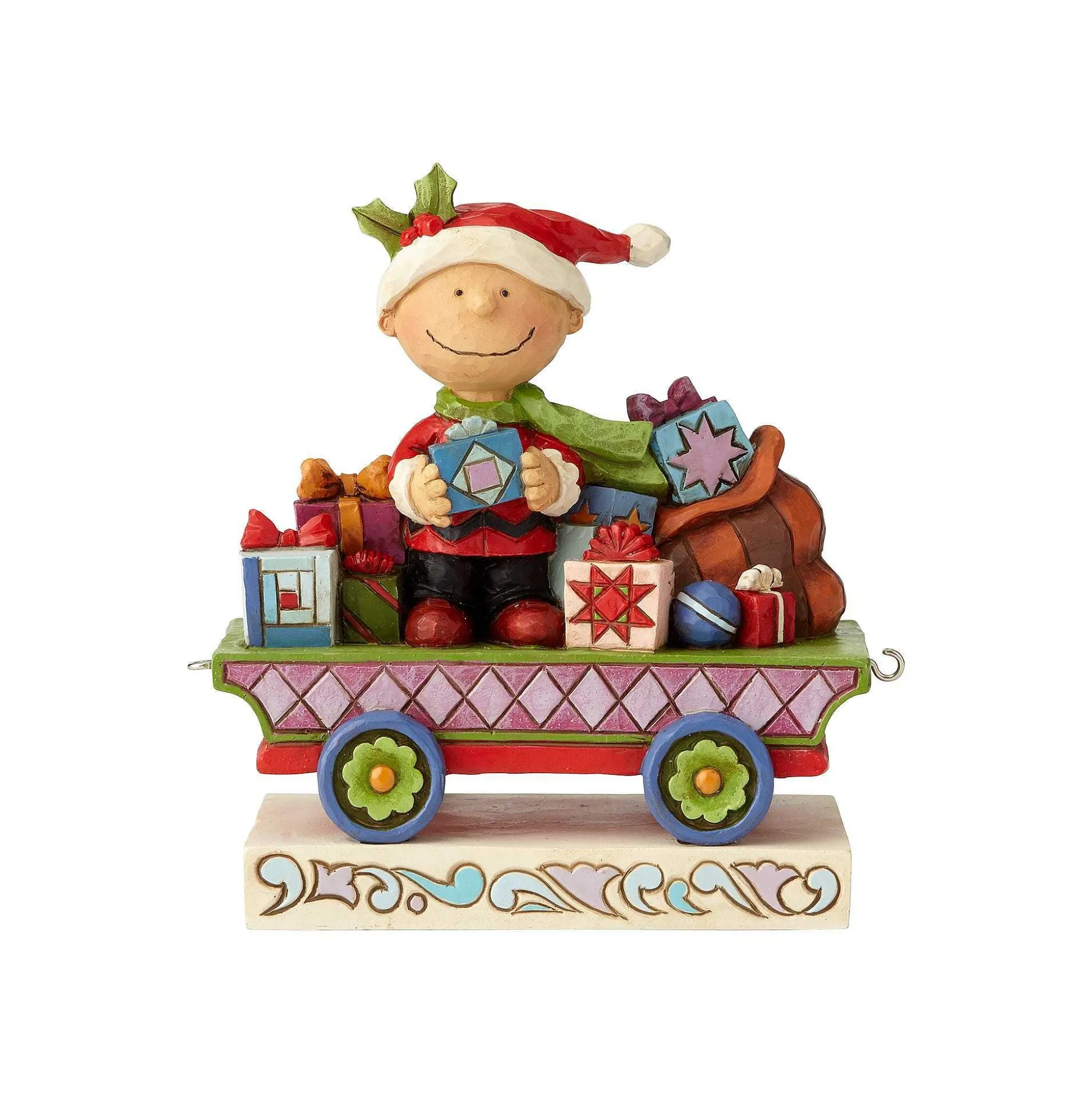 All Aboard The Peanuts Christmas Train! A Very Festive Charlie Brown Sits In Car No. 1, Keeping Watch Over The Bag Of Beautifully Wrapped Gifts. Jim Shore’s Masterful Use Of Color Brings The Handcrafted Design To Life, Hand-Painted In Exquisite Detail.