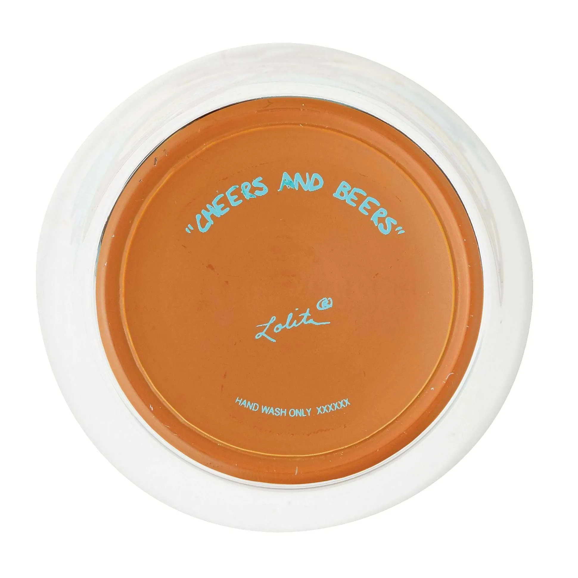 Three Cheers For More Beers! Two Clinking Beer Bottles On This Hand-Painted Pint Glass By Lolita Are Bound To Get Any Party Rolling. Toast To The Good, The Bad, And The Bubbly With This Colorful Cup And Then Do It All Again.