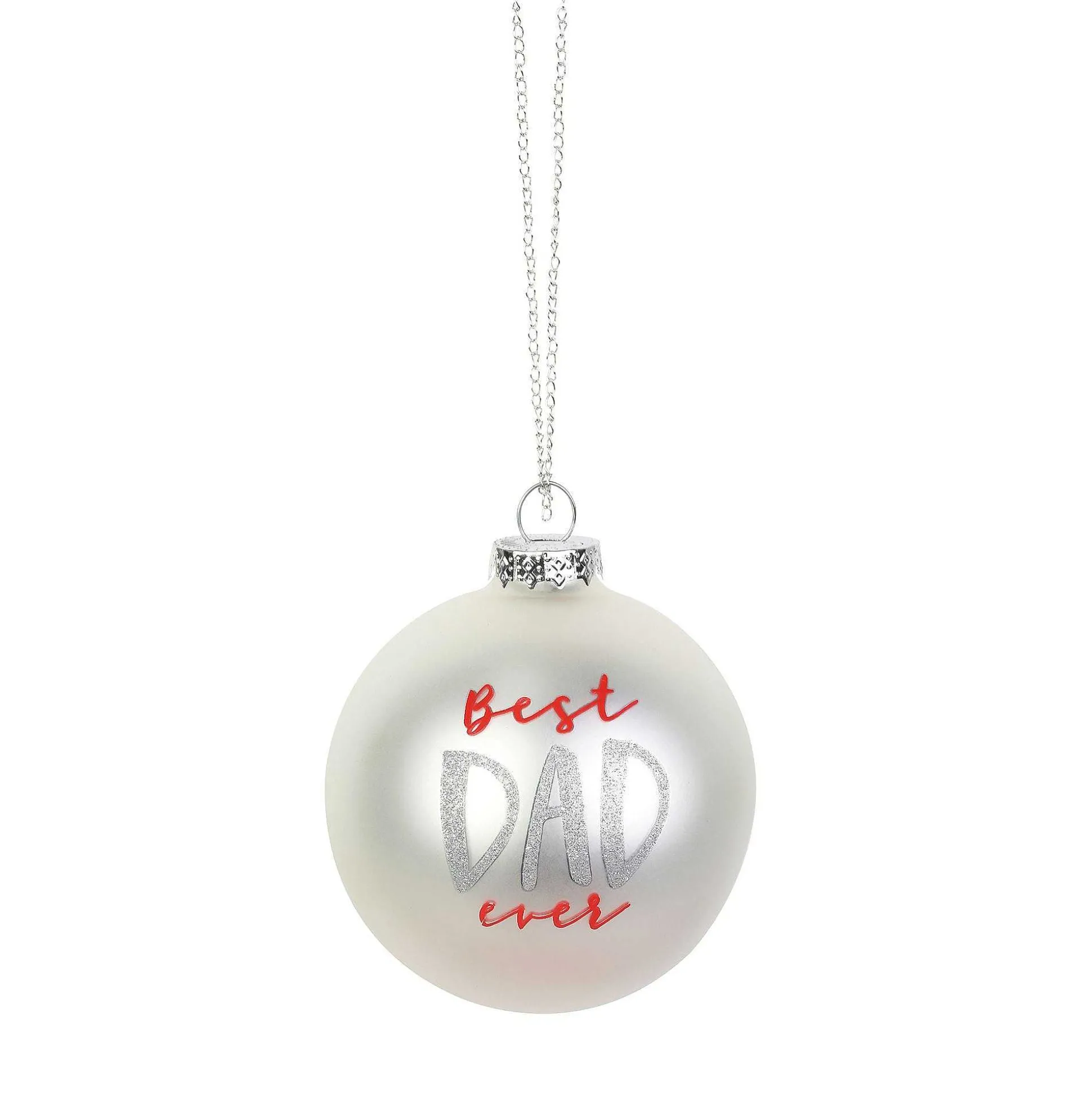 This Glass Ornament Is Detailed With Glitter. It Has Giftable Pacaking Adorned With A Ribbon. It Make A Perfect Holiday Gift For A Dad.