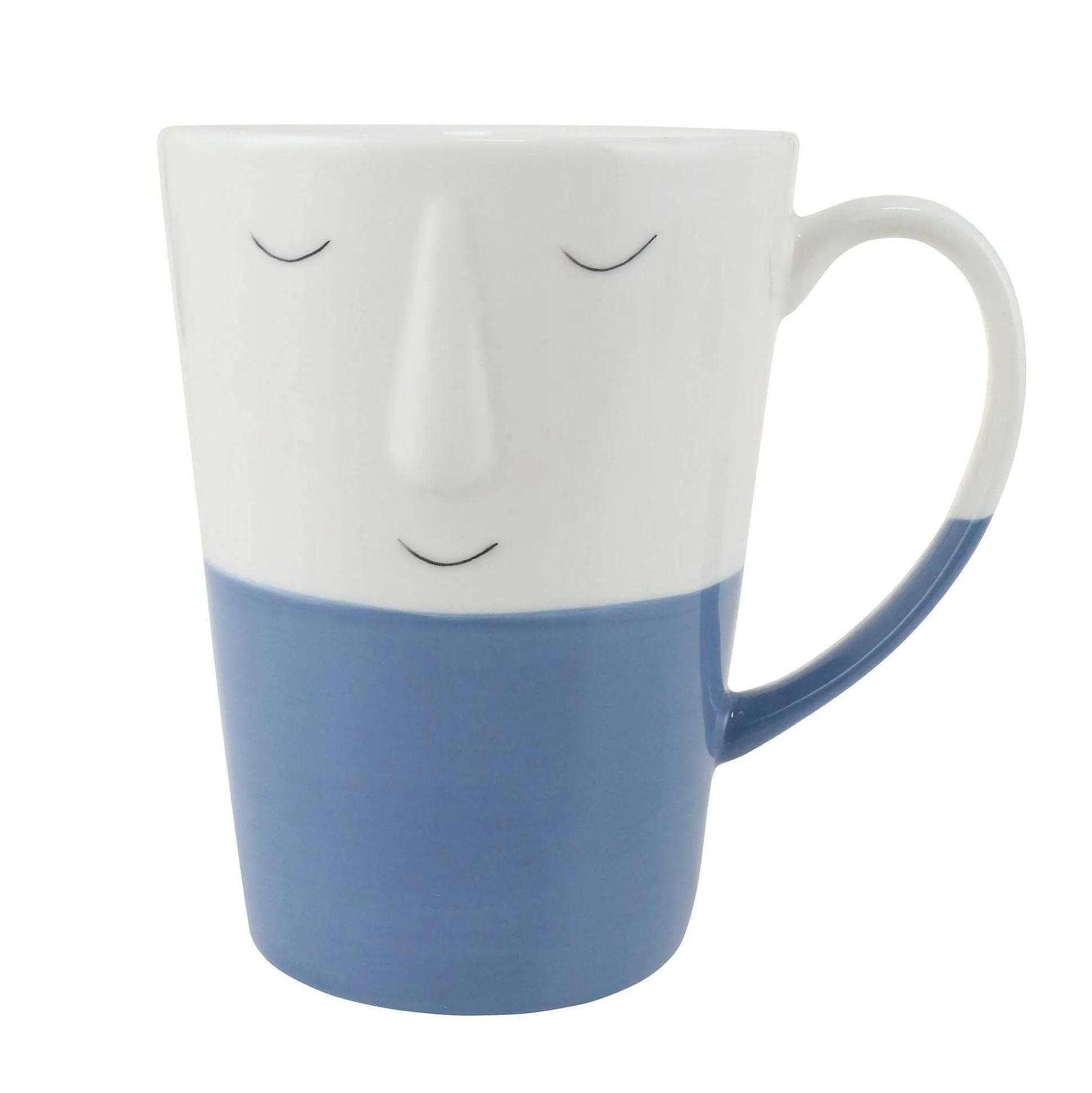 This Sweetly Smiling 12 Oz Cup Is A Part Of A Collection Of Family Mugs From Our Name Is Mud. Sculpted With A Relaxed Expression, The Cup Features Dad’s Calming Charm. Half Dipped In Blue Paint, This Mug Is Labeled Dada On The Back.