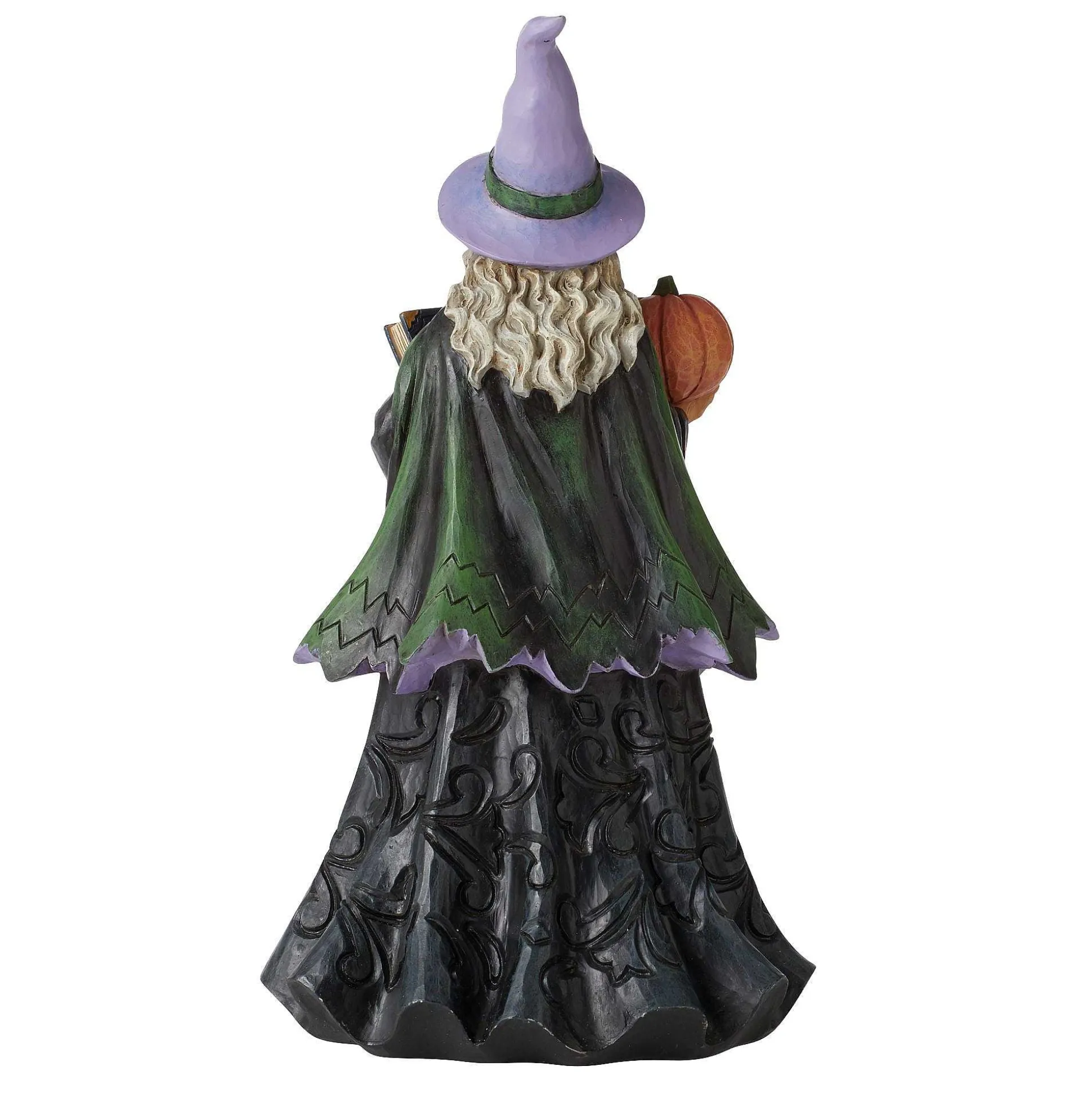 This Spellbinding Jim Shore Sorcerer Holds A Jack-O-Lantern And Potions Book In Her Ghoulish Grip. Wearing A Witch’s Hat Patterned In Stars, Her Purple Cloak Reveals A Ghostly Graveyard Scene. A Phantom Dances In The Magic Made By The Moonlight.