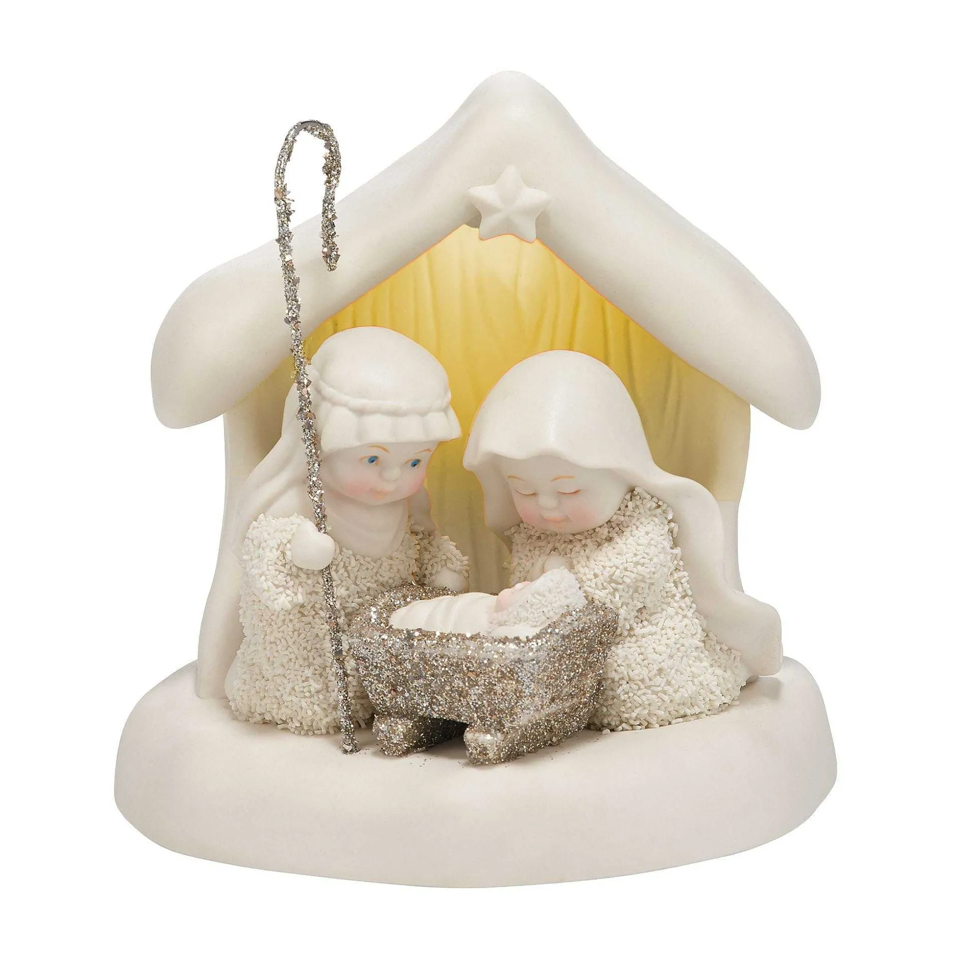 - Showcases Three Snowbabies In A Nativity Scene Illuminated With A Battery-Operated Light