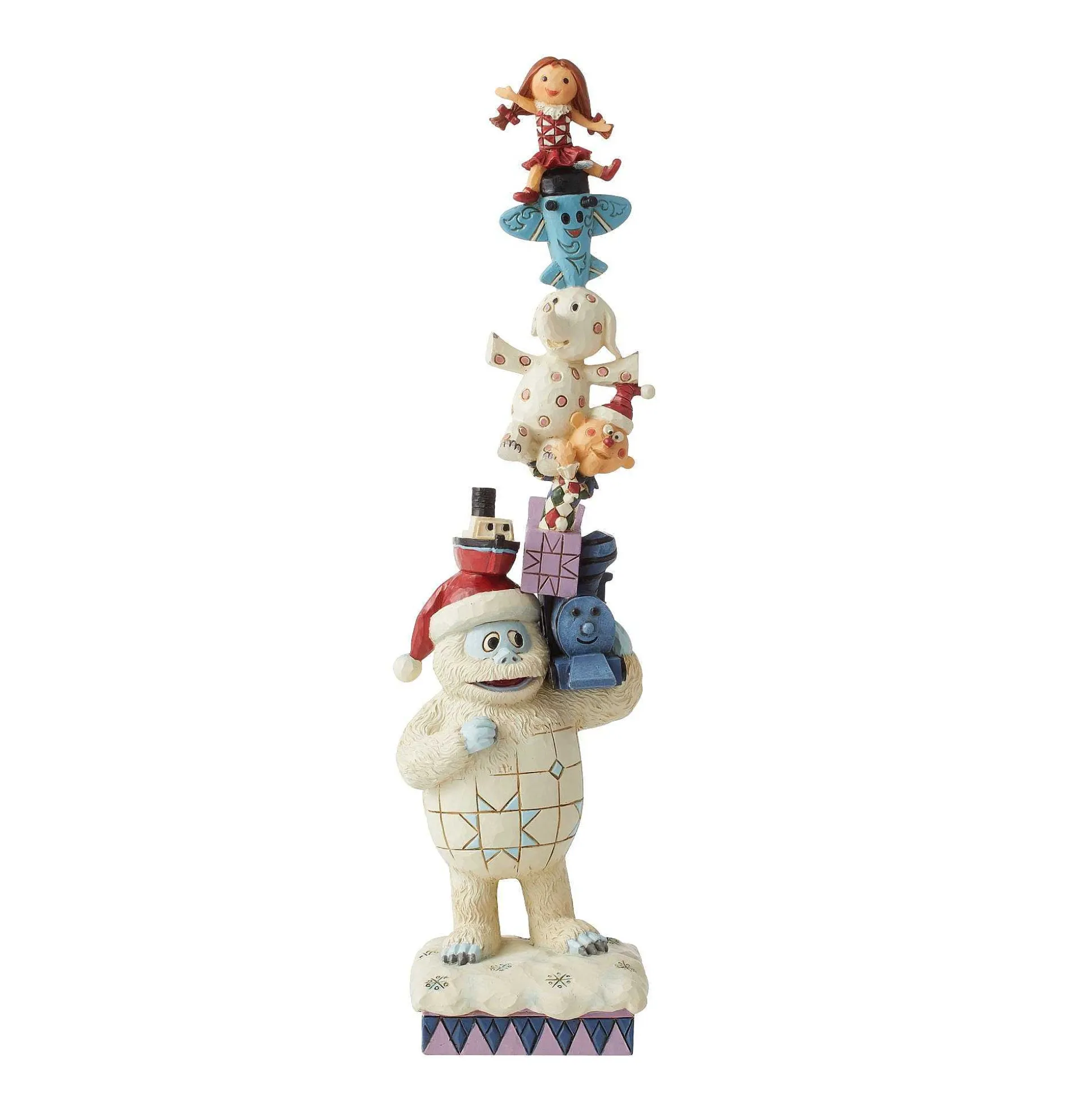 Bumble, The Abominable But Friendly Snowman, Is The Base Of A Towering Stack Of Smiling Friends. Wearing A Santa Hat, Bumble Balances The Misfit Toys On His Shoulder With Care. Together, The Jim Shore Crafted Bunch Spread Joy This Holiday Season.
