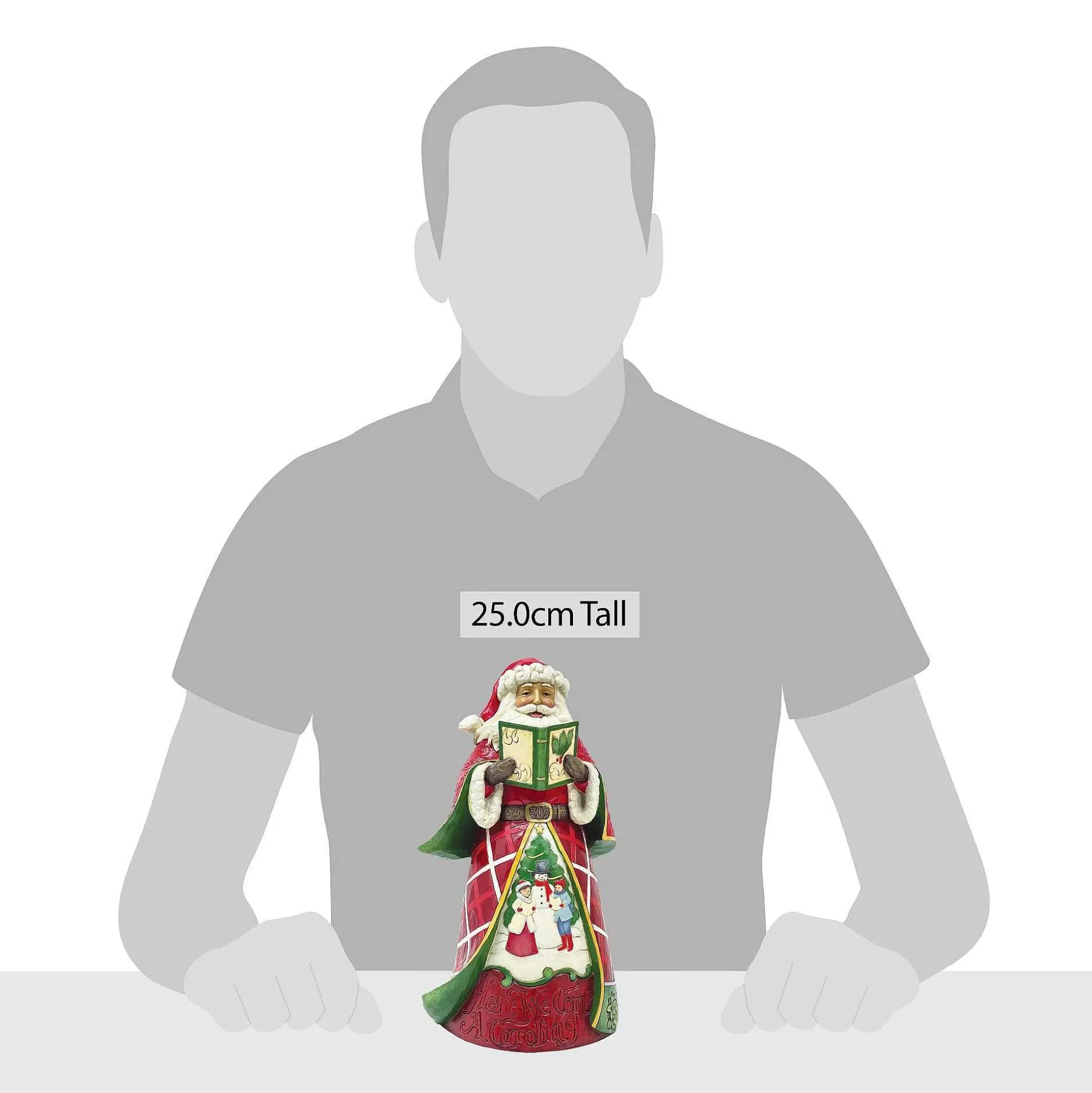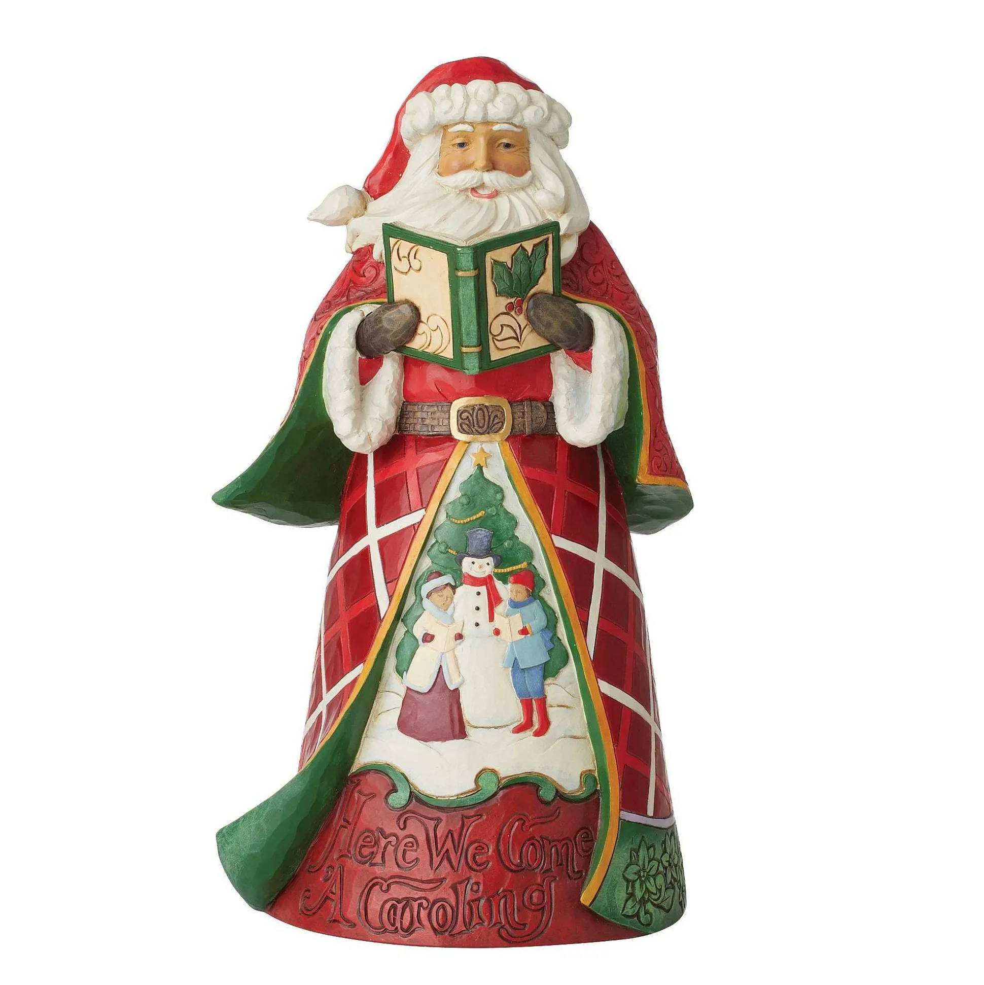 This Colorful Jim Shore Statuette Features A Singing Santa With A Caroling Scene. Santa’s Billowing Patchwork Cloak Frames Two Carolers Singing Beside A Snowman And Christmas Tree. With Luxurious Patterns And Poinsettias, This Figurine Is A Classic.