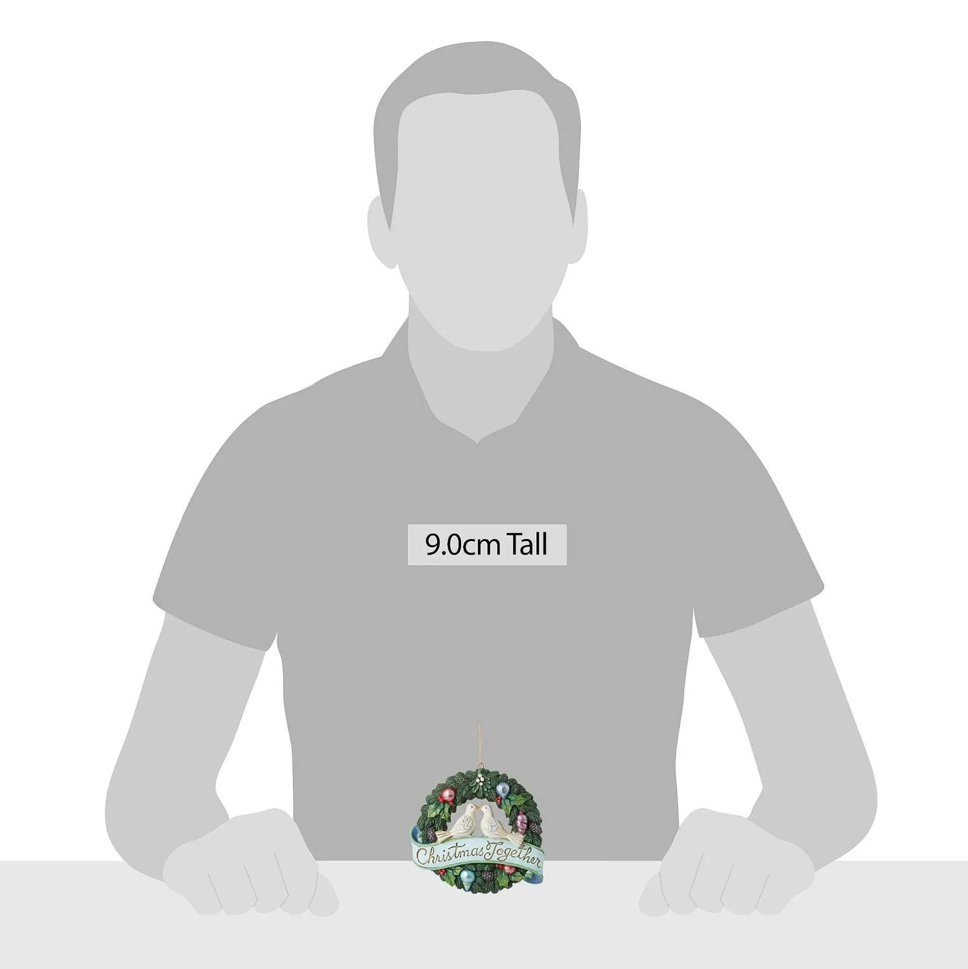 This Sweet 3.5″ Jim Shore Ornament Is Perfect Keepsake For Couples New And Old. Framed Within A Decorated Wreath, Two Turtle Doves Kiss Under White Mistletoe. The Romantic Banner Reads “Christmas Together” In Tender Script. Spend This Year In Love.