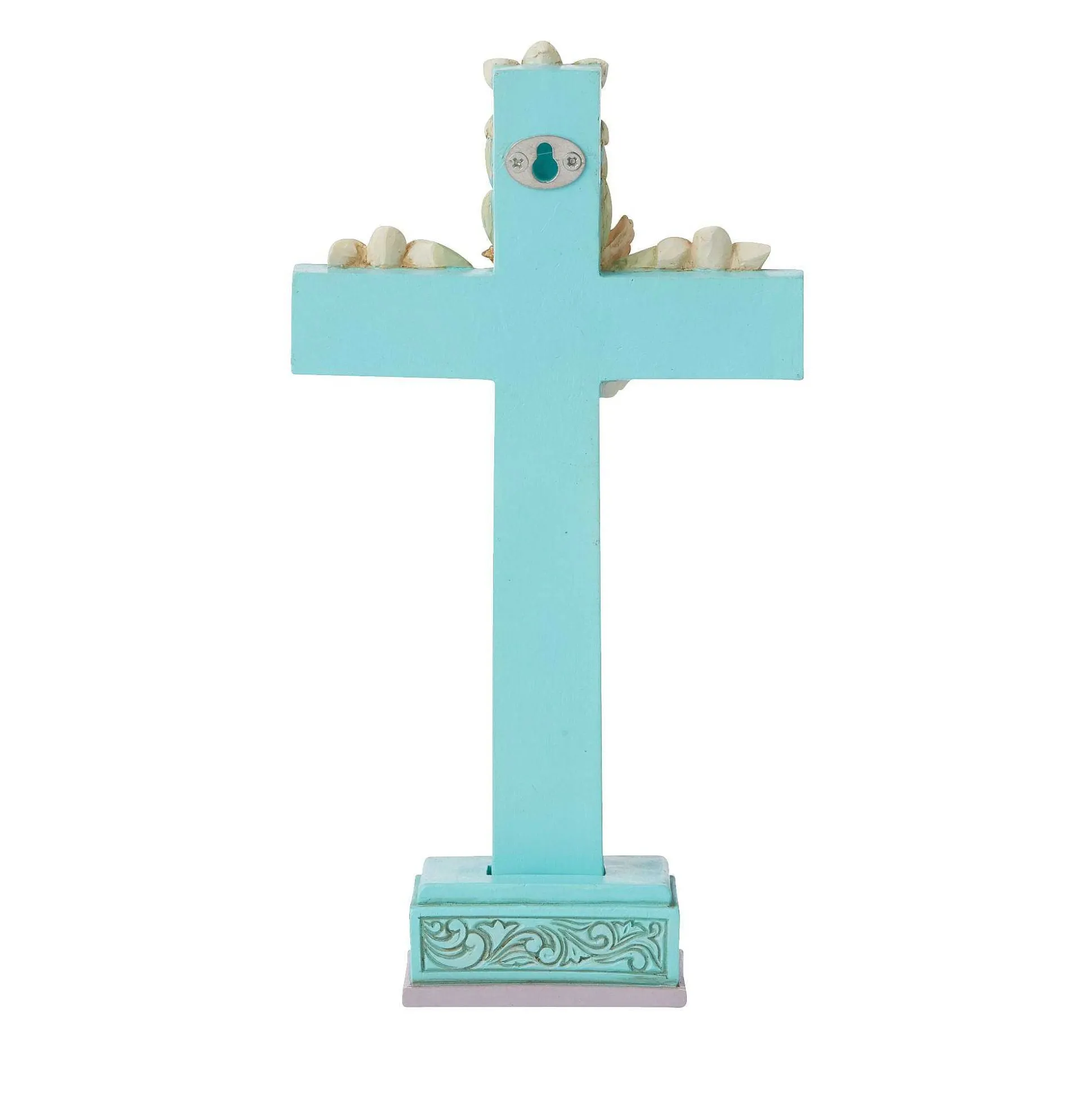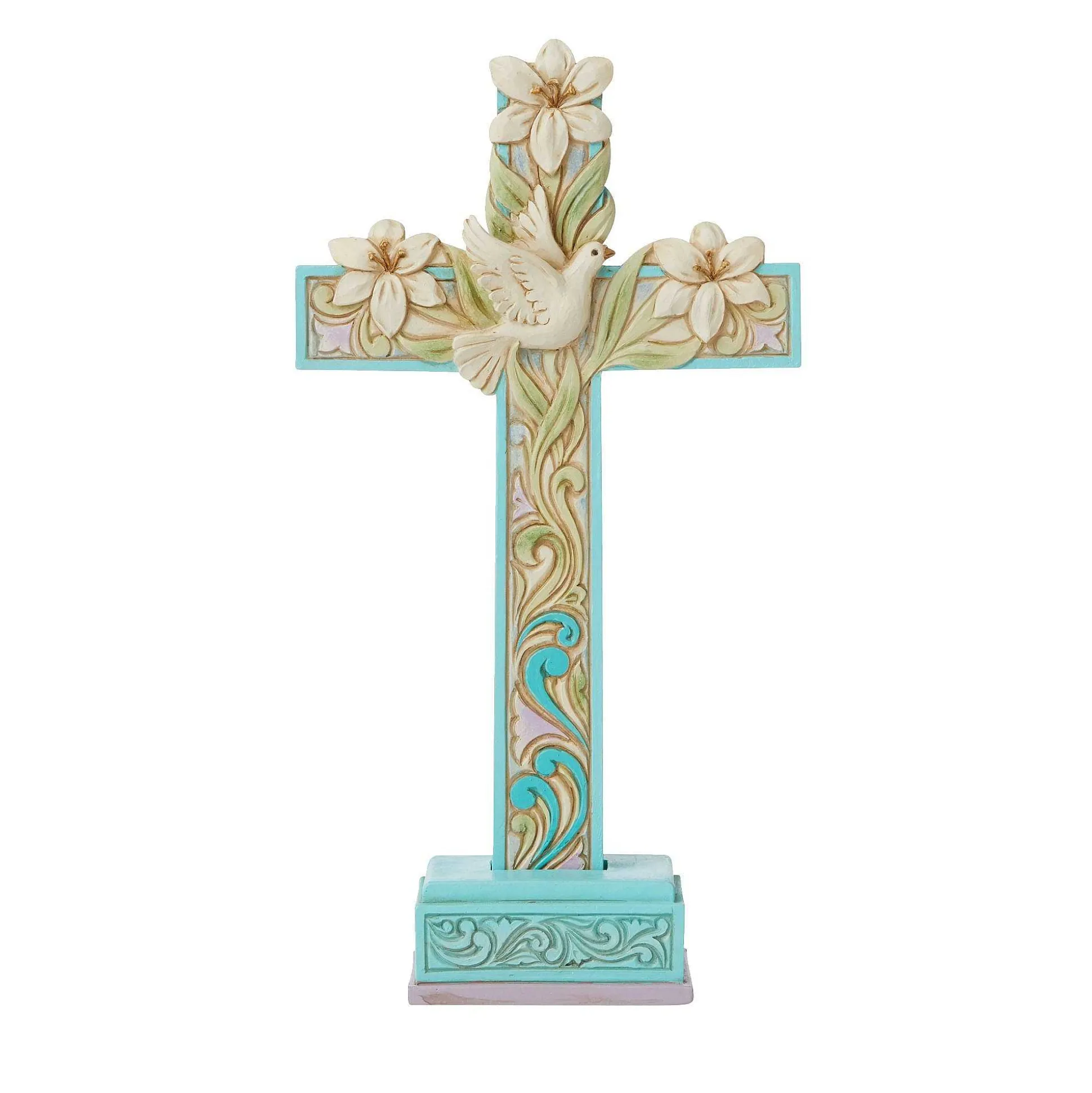 Brandished In Easter Lilies, This Cool Blue And Purple Jim Shore Cross Hosts Intertwining Vines Of Promise And Serenity. A Beautiful White Dove Sits In The Center Of The Crucifix, Symbolizing The Peace And Promise Of New Life Delivered By Jesus’ Resurre