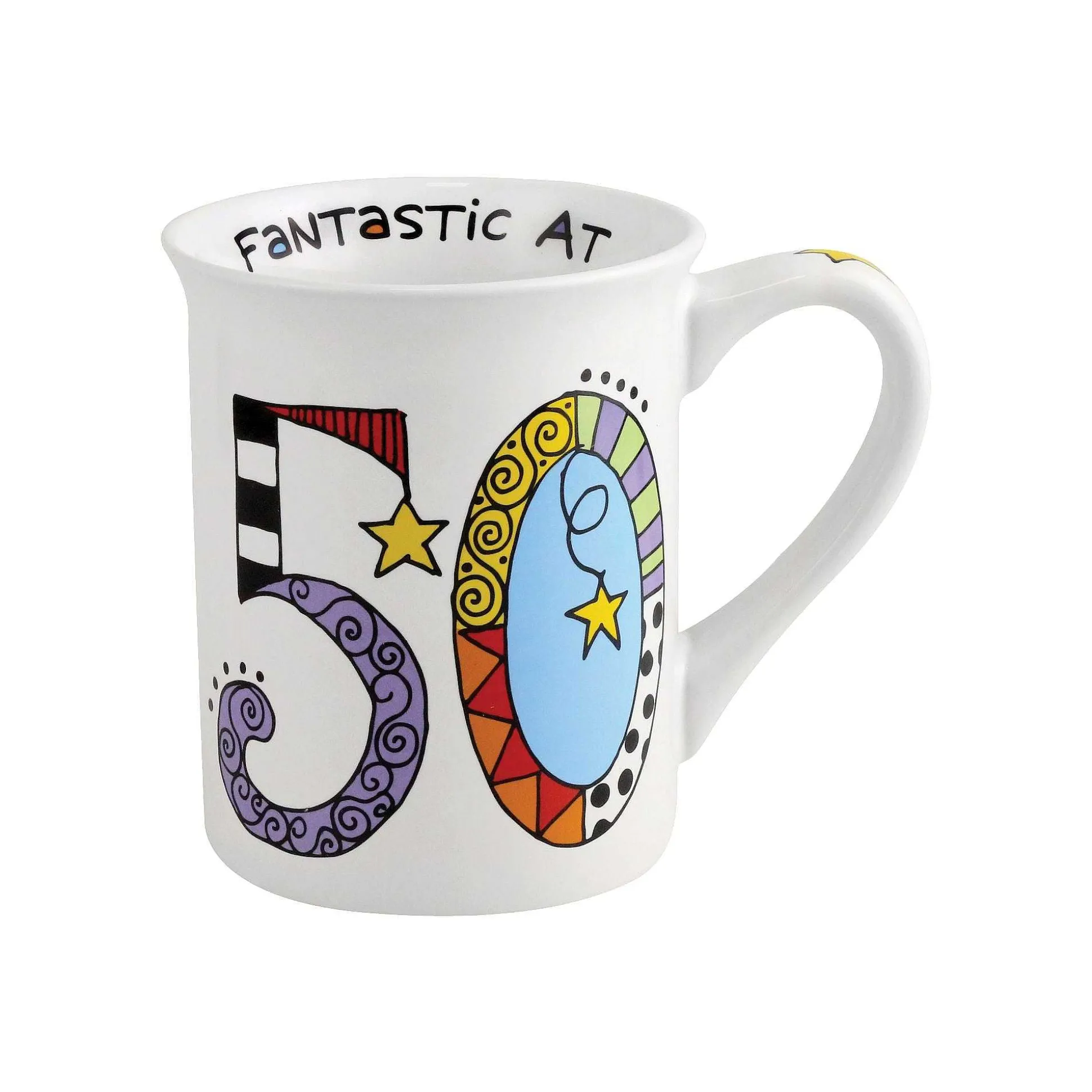 Celebrate The Achievement Of Another Trip Around The Sun With This Cheerful Mug From The Cuppa Doodles Collection. Covered In Color, This Festive Mug Pronounces It’s Drinker Fantastic At 50. As Long As It’s In Use, They Won’T Age Past 50!