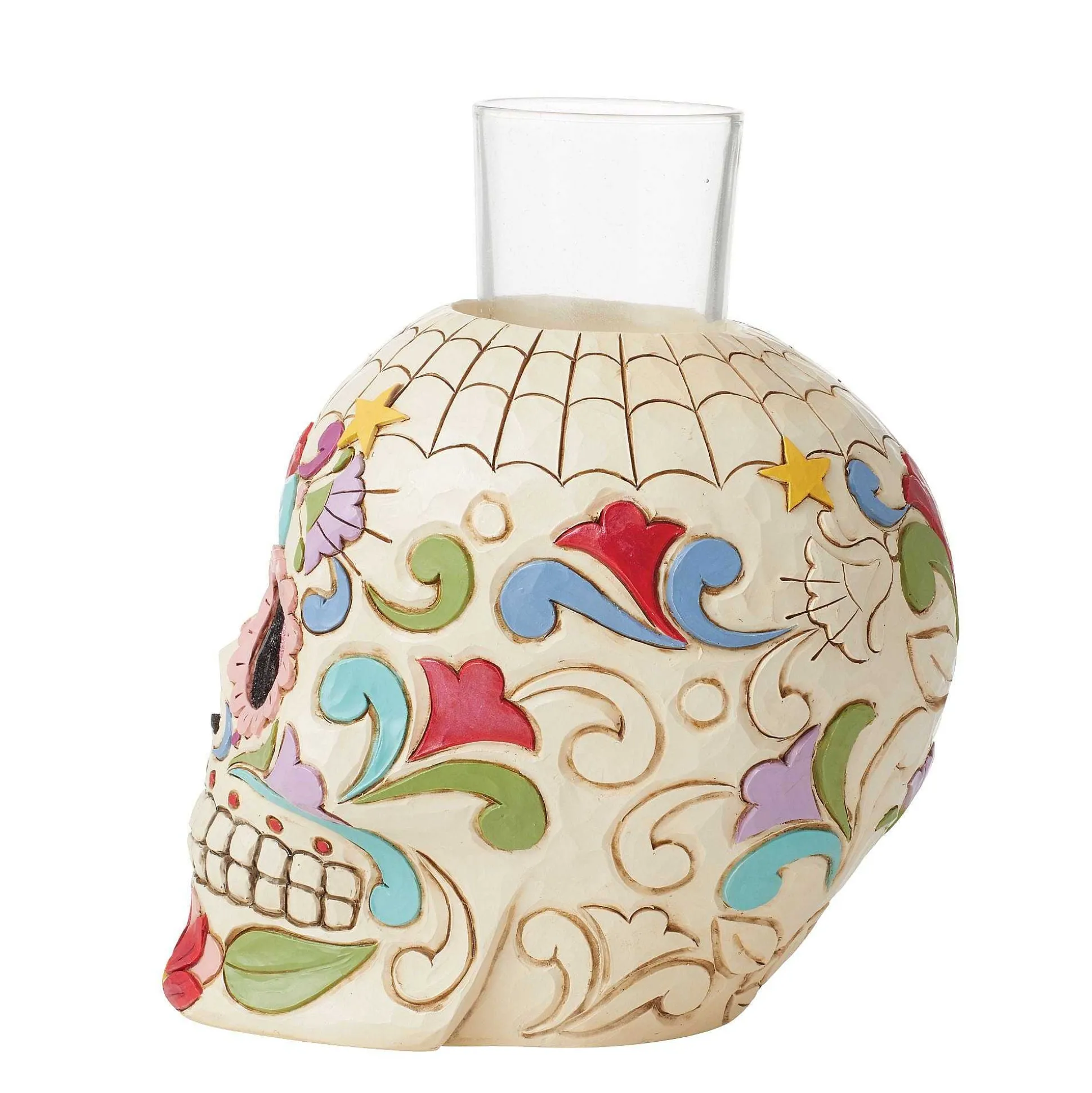 This Fantastic Sugar Skull Votive Honors The Nearly 3,000 Year Old Tradition With Bright Color And Pattern. Designed By Renown Artist Jim Shore, This Charming Bust Features Rosemaling Flowers To Honor The Day Of The Dead Custom And Celebrate Halloween.