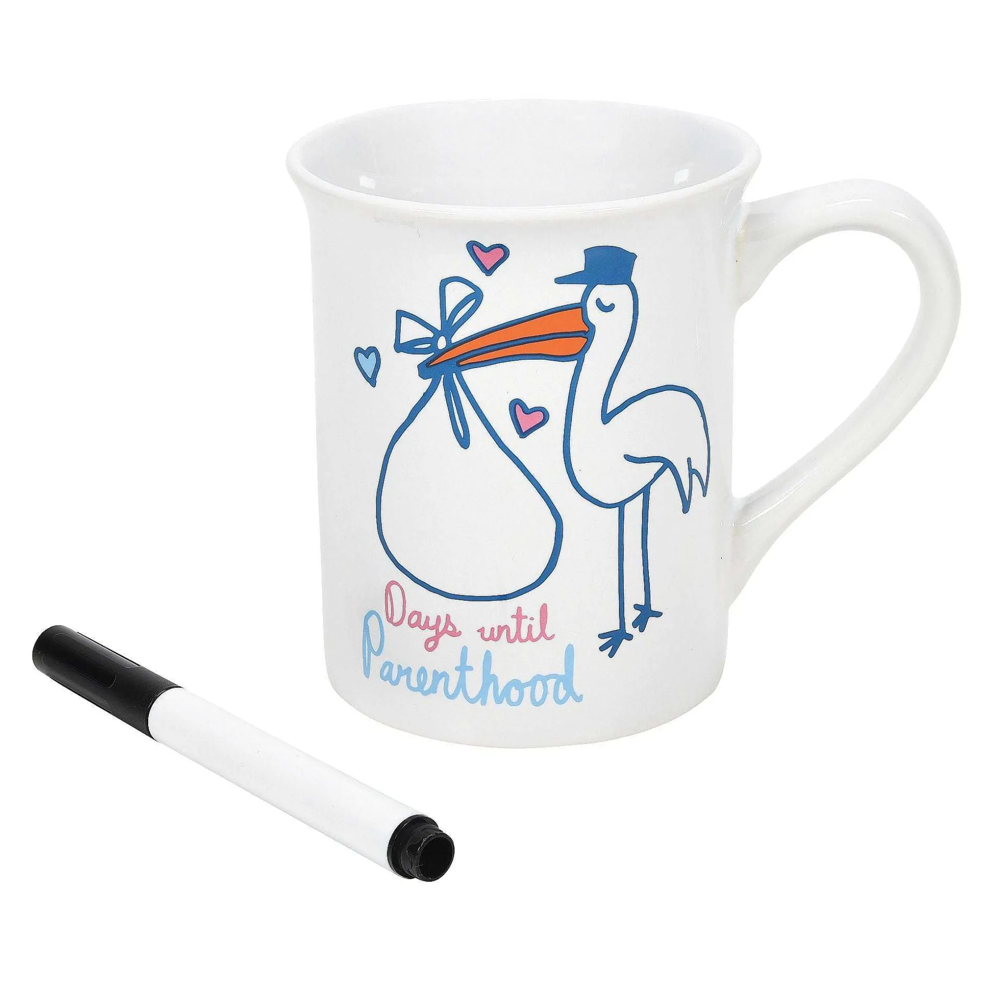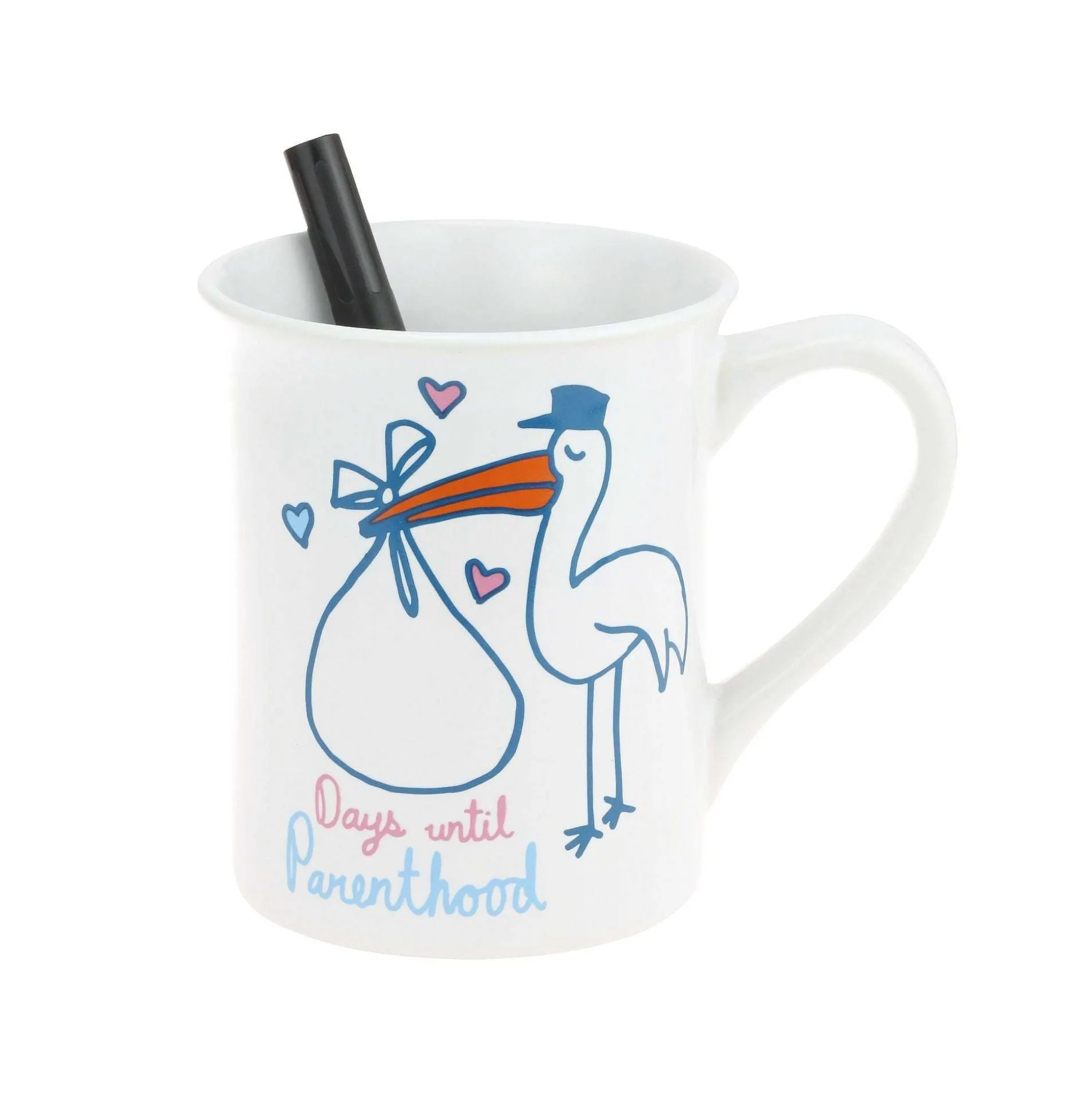 Start The Day By Updating The Countdown. The Bun Is In The Oven And The Clock Is Ticking Down. Countdown The Days Until Delivery With This Sweet Mug By Our Name Is Mud. With Dry Erase Capability And Included Marker, The Stork Will Be Here Soon.