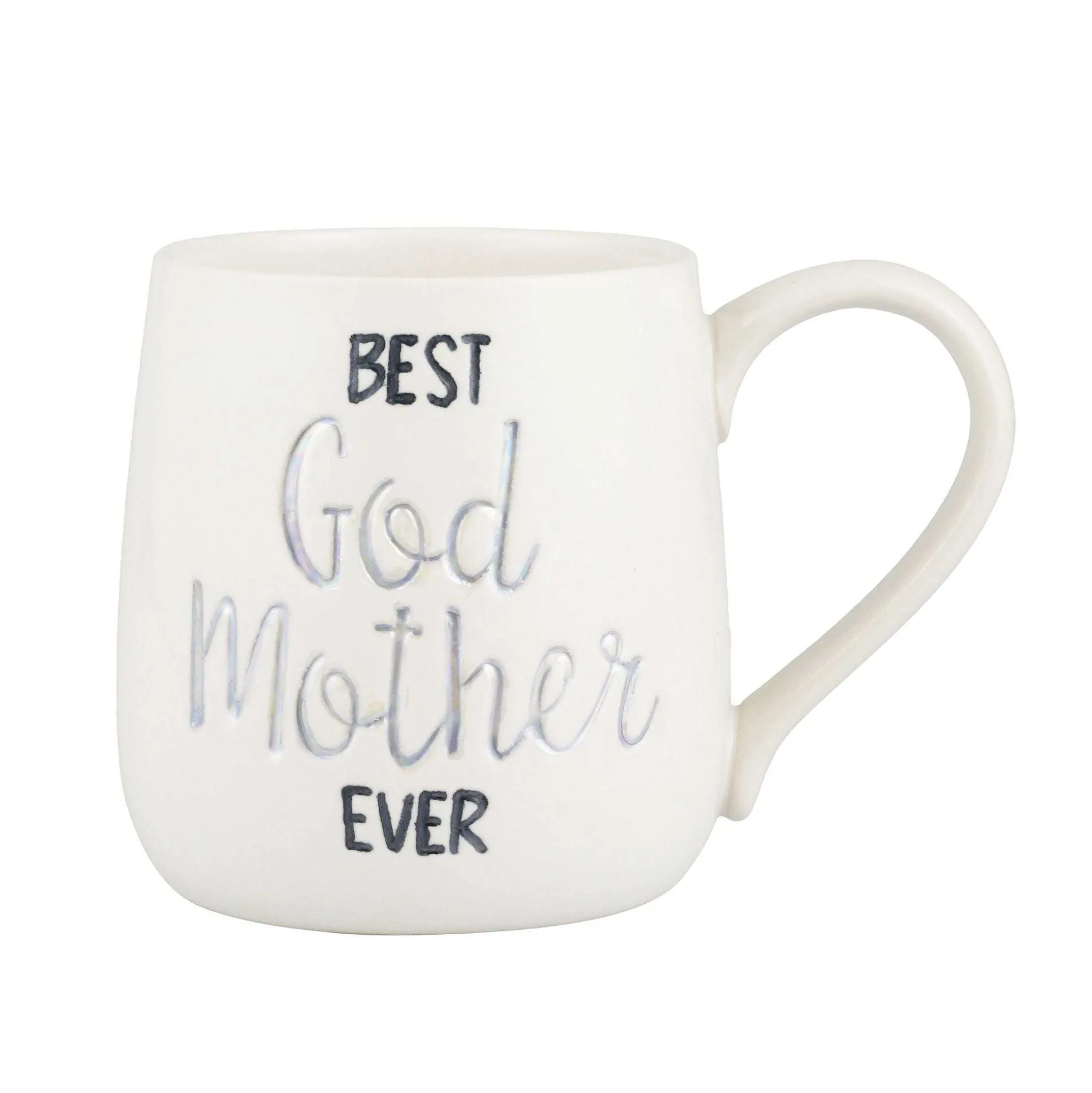 A Godmother Is A Blessing. This Heartfelt 16 Oz. Stoneware Coffee Mug From Our Name Is Mud Features Engraved And Hand-Drawn Script Lettering And Front And Back Messaging