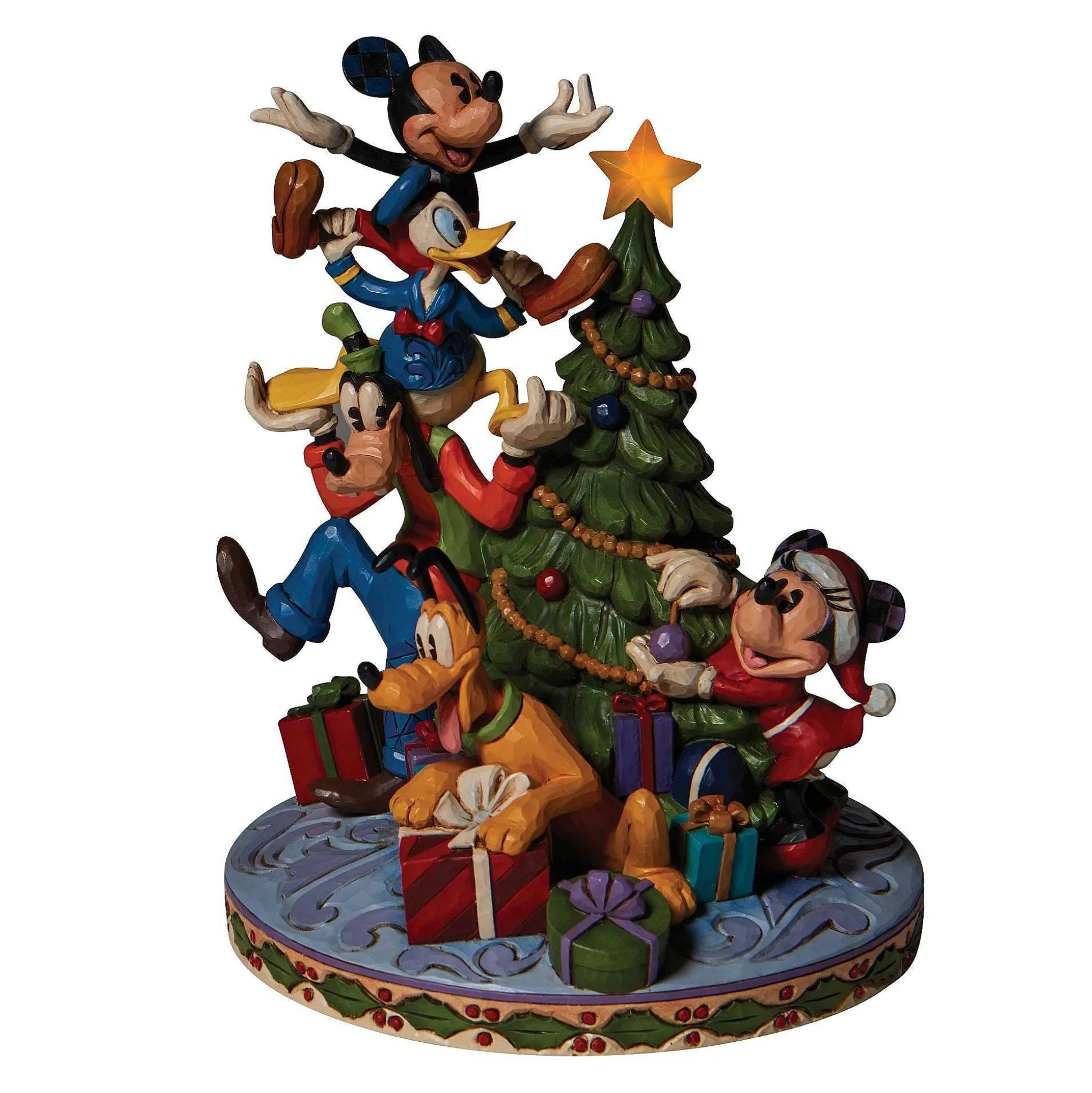 Mickey Mouse Gets A Hand And A Boost Decorating The Tree With A Lit Star This Year. His Friends Form A Teetering Tower To Hoist Him To The Top Of The Mouse Family Tree While Minnie Adds The Finishing Touches Below In This Disney By Jim Shore Design.