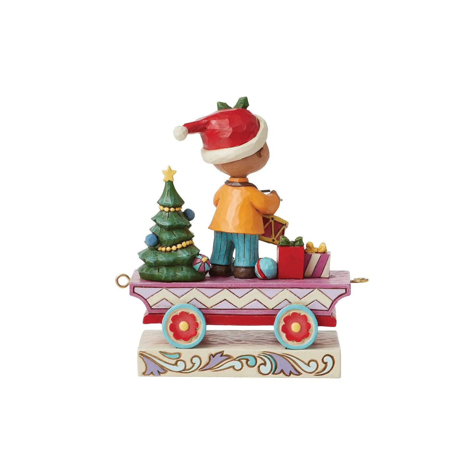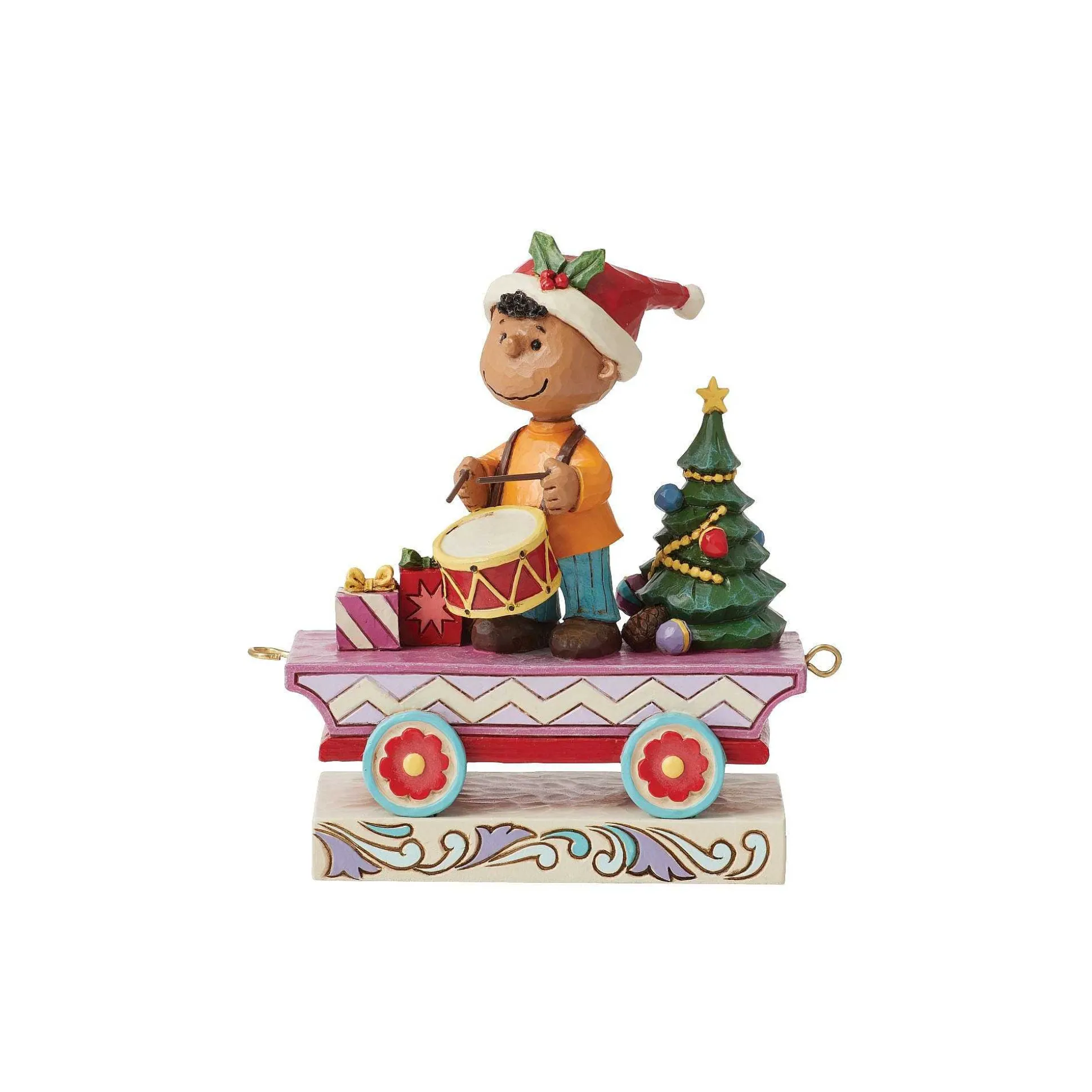 This Impressive Christmas Train Is A Masterpiece Of Jim Shore’s Craftsmanship And Charm. The Winding Line Features Many Collectible Members Of The Peanuts Gang Sharing Their Talent For The Holiday Ensemble. This Unique Cart Stars Franklin Drumming.