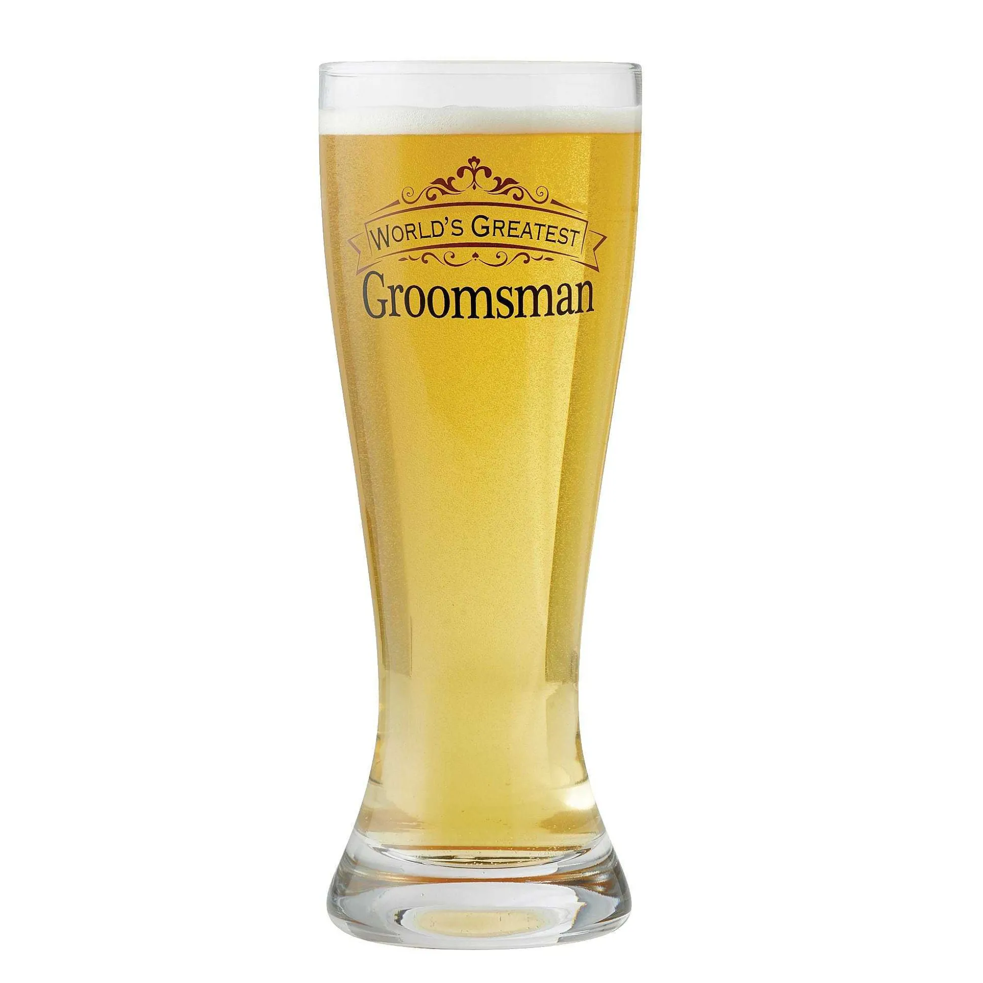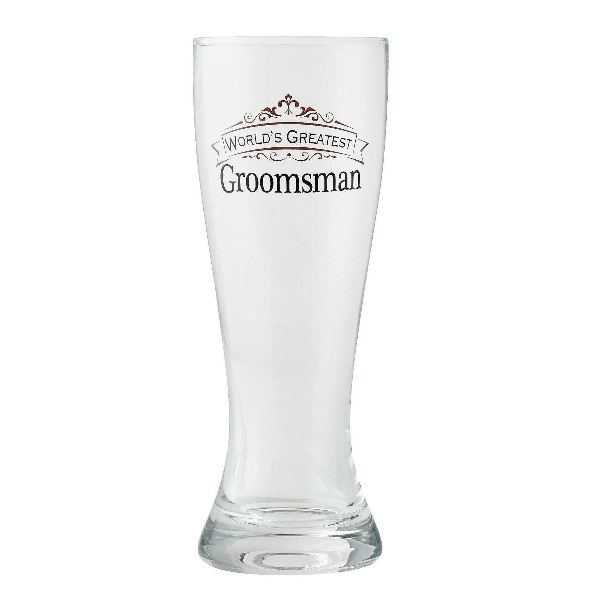 This Masculine Groomsman Beer Glass Is Mouth Blown For Superior Clarity And Shine. The Intricate Detail Is Done In A Rugged Black And Brown Finish. Handwash Only. Glass Is Engravable.