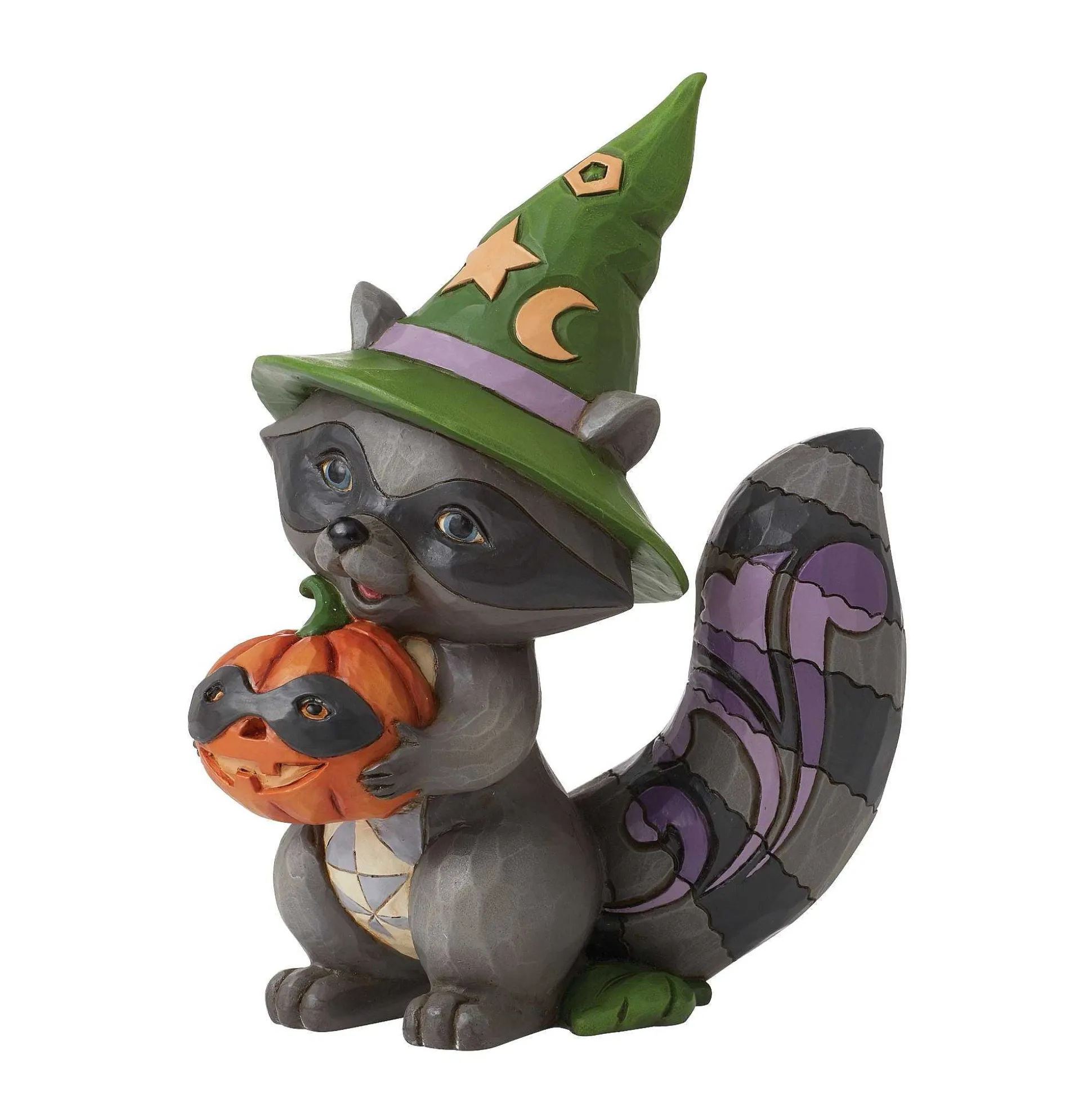 - Jim Shore Heartwood Creek “Halloween Mask-Erade” Halloween Racoon With Pumpkin