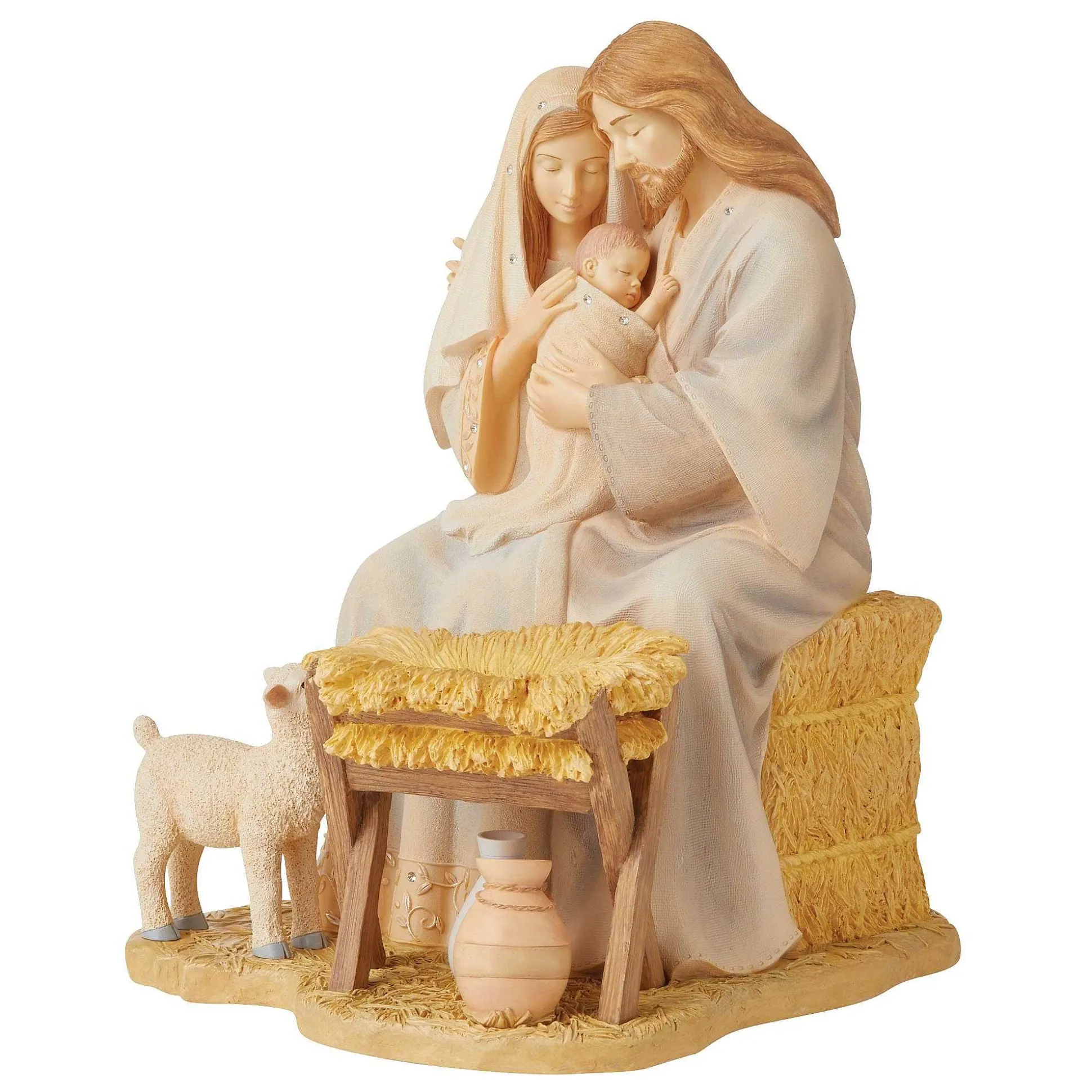 Artfully Crafted, This Manger Scene Captures The True Reason For The Holiday Season With Grace And Poise. New Parents Mary And Joseph Hold The New Born King With Love While A Delicate Lamb Foretells Of The Great Sacrifice In The Little Boy’s Future.