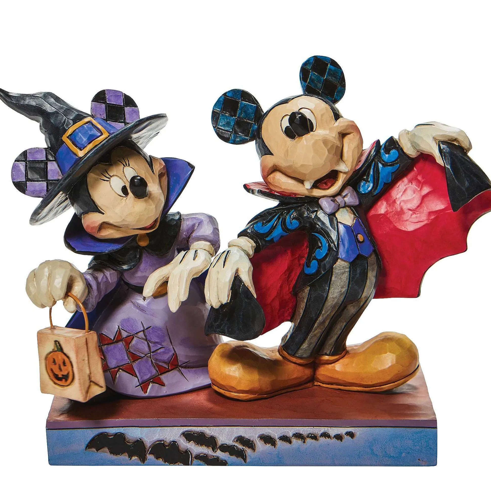 Disney’s Mickey And Minnie Don Some Spooky Suits For The Sake Of Halloween. Mickey Dresses As A Vampire While Minnie Transforms Into A Candy Craving Witch In This Jim Shore Design.