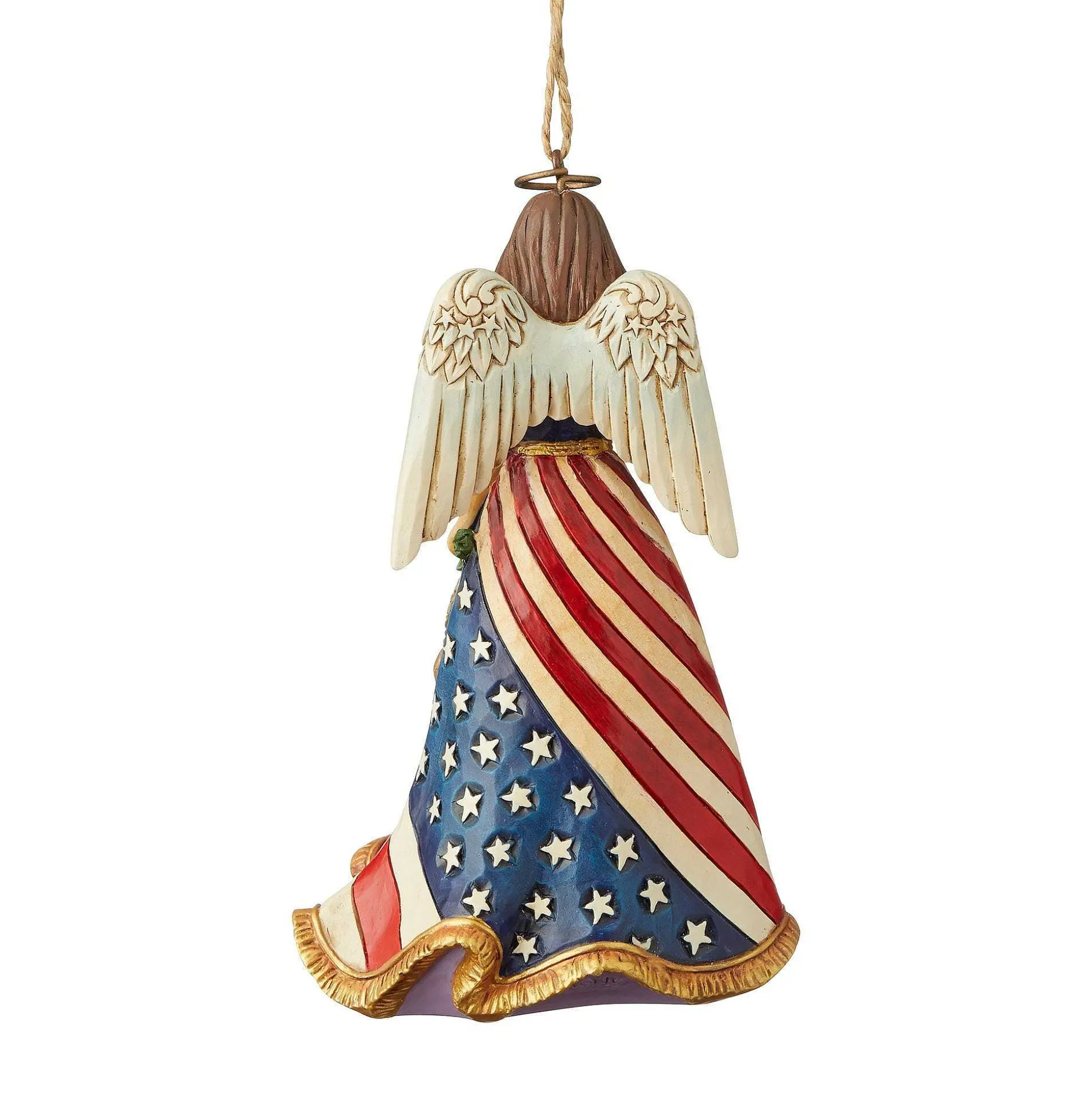This Star-Spangled Beauty Angel Stands Tall And Proud In Her Red, White And Blue American Flag Gown. With Powerful Wings And Her Hand On Her Heart, She Is A Colorful Reminder Of The Country We Love And The Hard Won Freedoms We Cherish.