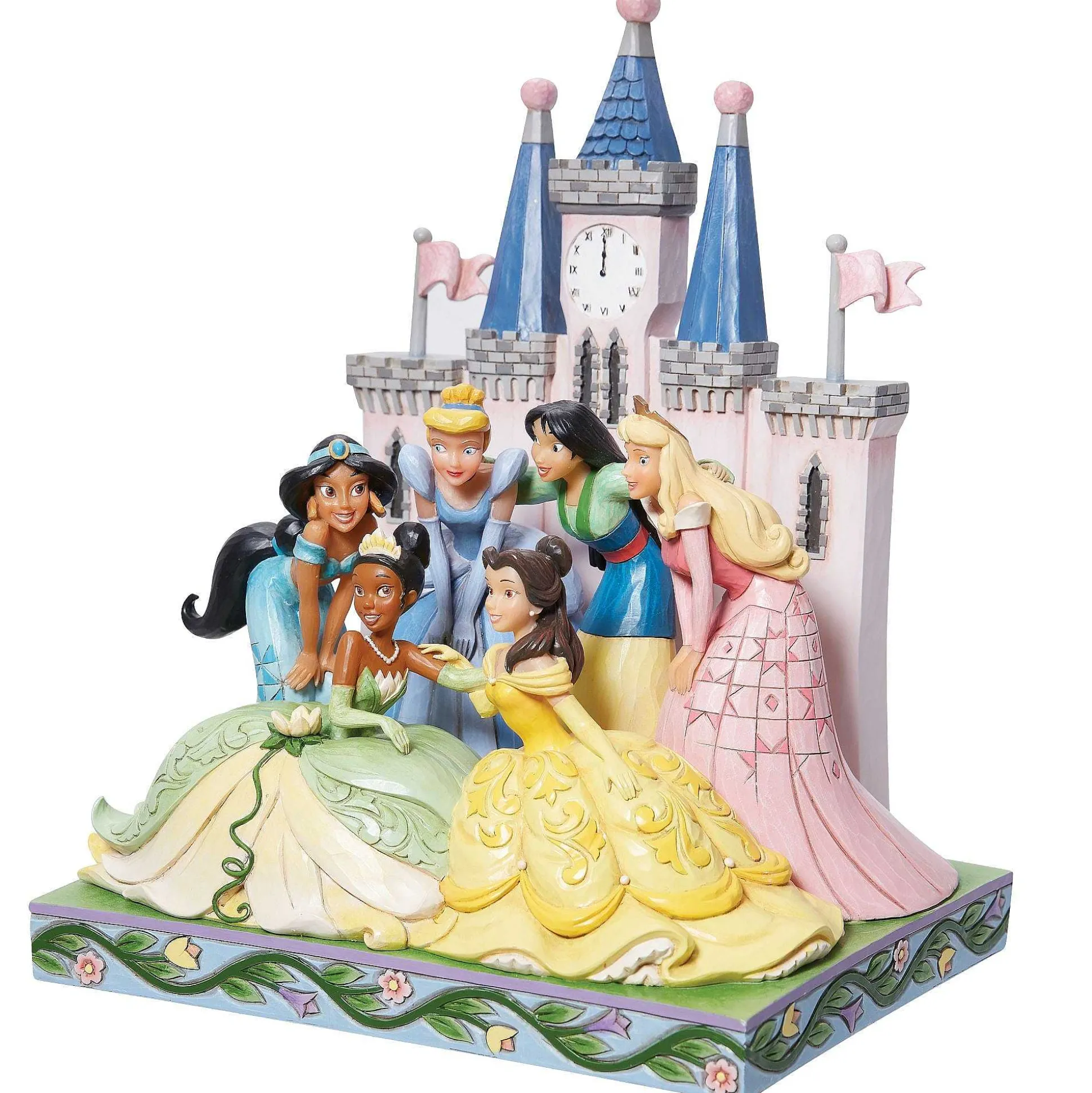 Posing At This Jim Shore Castle, The Disney Princesses Huddle Together In Friendship. Each Beautiful And Brave, They Are An Inspiring Group Of Girls. Tiana, Belle, Cinderella, Mulan, Jasmine And Aurora Wear Striking Jim Shore Styled Gowns.