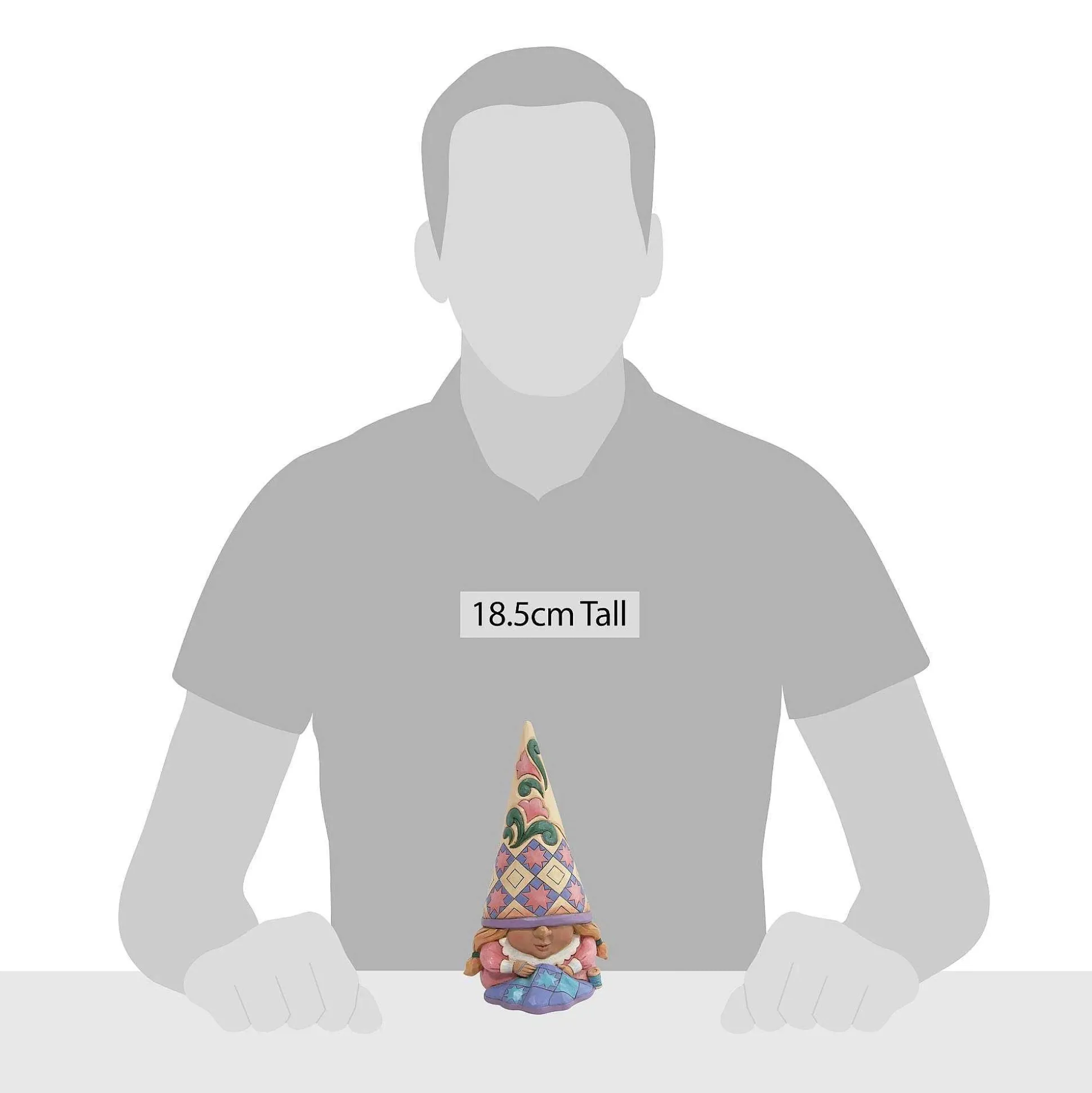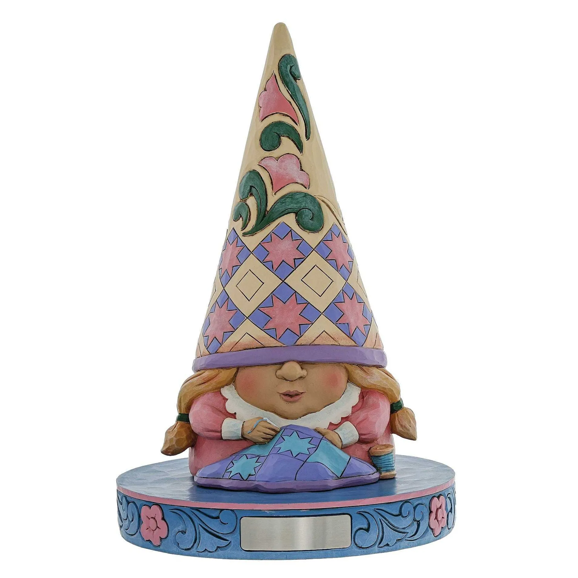 No One Knows Gnomes Quite Like Jim Shore! This Colorful Gnome Celebrates The Love Of Sewing One Stitch At A Time. Working Away At A Patchwork Blanket That Matches Her Hat, This Gnome Enjoys Her Peaceful Pastime. Wearing Pigtails, She Sews With Love.