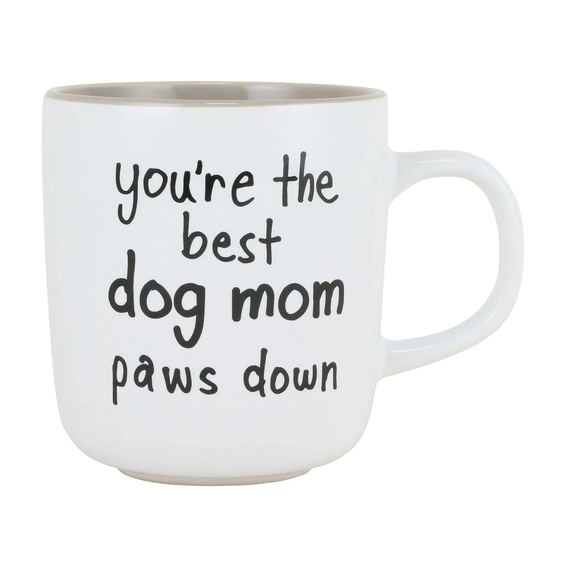 This 14 Oz Stoneware Mug By The Simply Mud Collection Is A Charming Addition To Any Kitchen. With A Clean Design, This White Mug Features Handwritten Script And Makes A Silly And Heartfelt Gift For The Best Dog Mom Around – Paws Down!