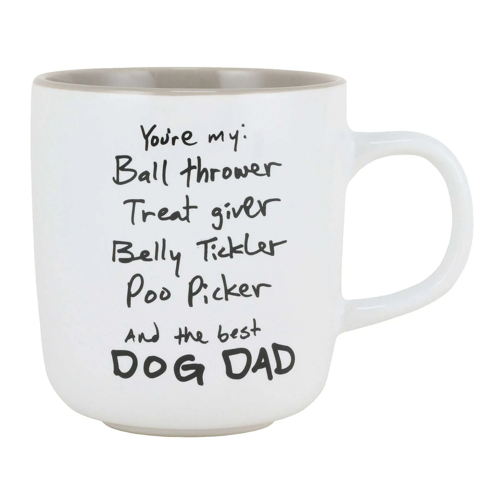 This 14 Oz Stoneware Mug By The Simply Mud Collection Is A Charming Addition To Any Kitchen. With A Clean Design, This White Mug Features Handwritten Script And Makes A Silly And Heartfelt Gift For The Dog Dad Who Bears Many Titles, Including Best.