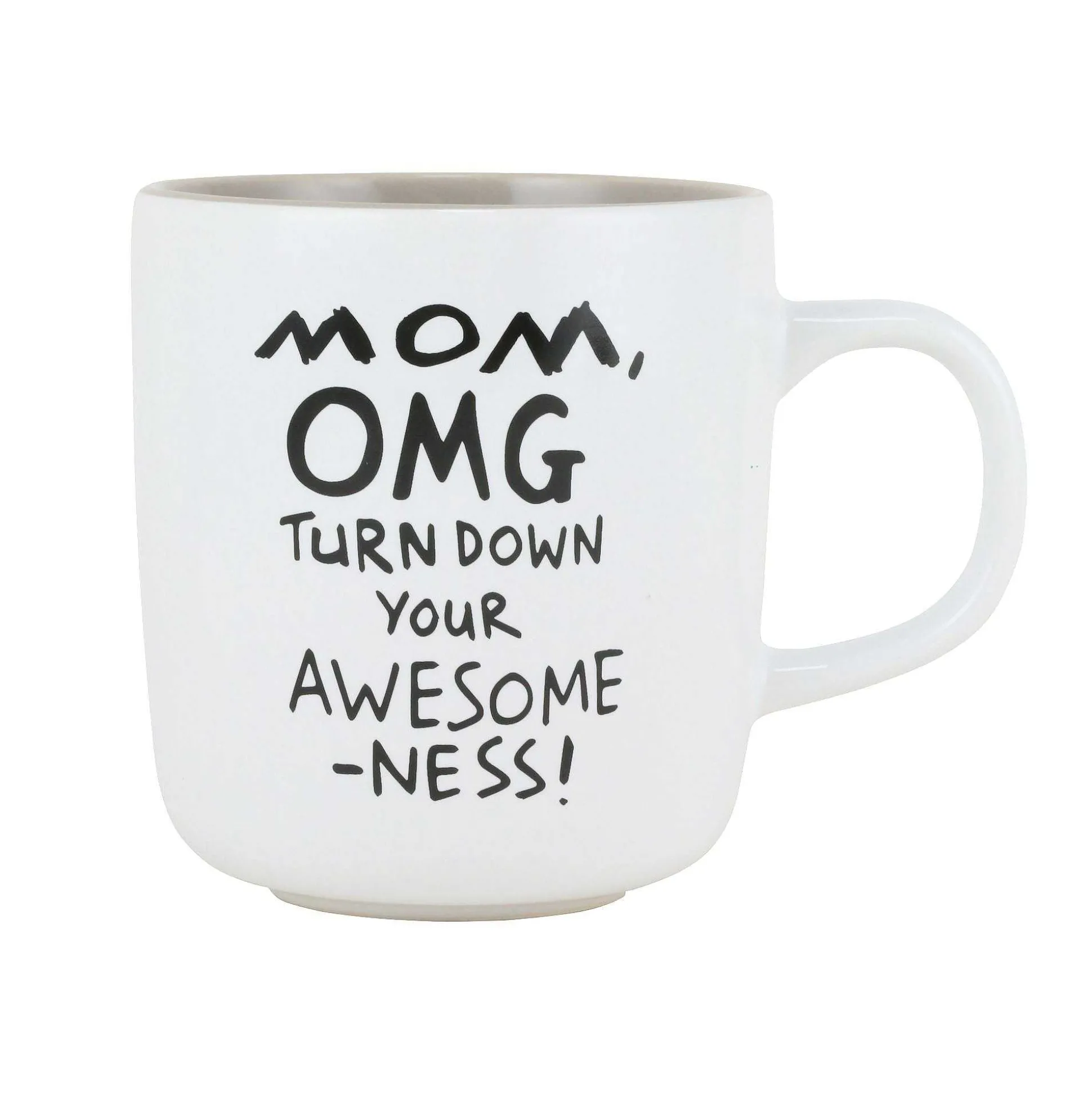 This 14 Oz Stoneware Mug By The Simply Mud Collection Is A Charming Addition To Any Kitchen. With A Clean Design, This White Mug Features Handwritten Script And Makes A Hilarious Gift For The Mom Who Is To Awesome To Handle.