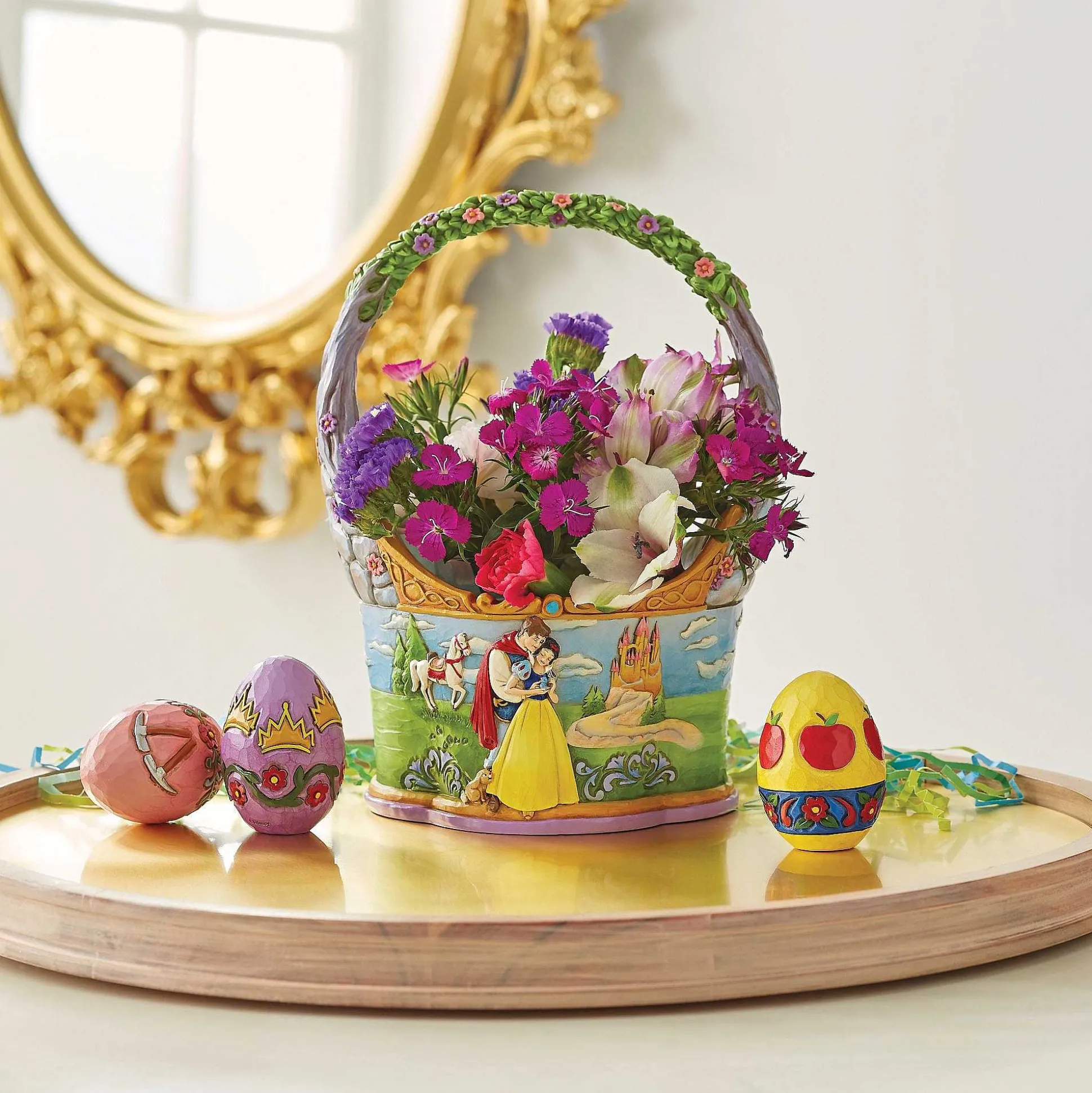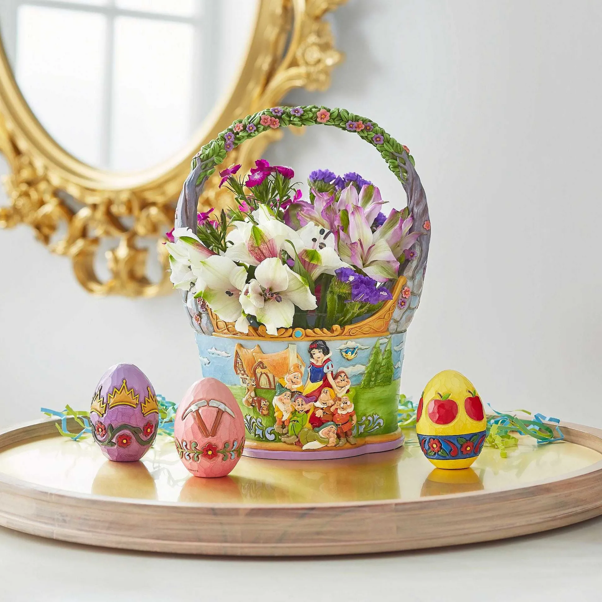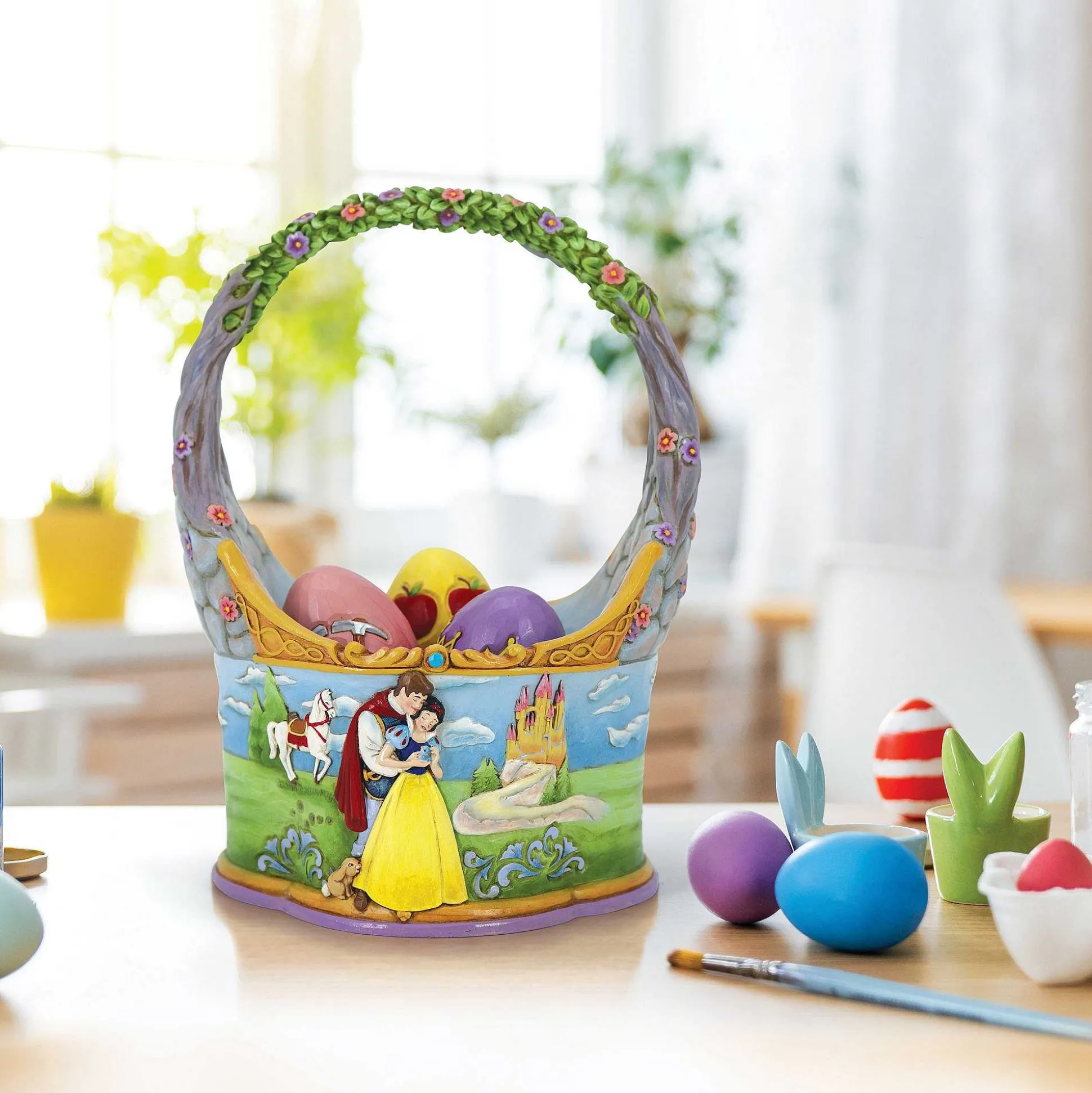 In Honor Of The 85Th Anniversary Of Snow White And The Seven Dwarfs, Jim Shore Crafts A Dazzling Two Sided Easter Basket With 3 Eggs Featuring The Beloved Characters In Intricate Detail And Color.