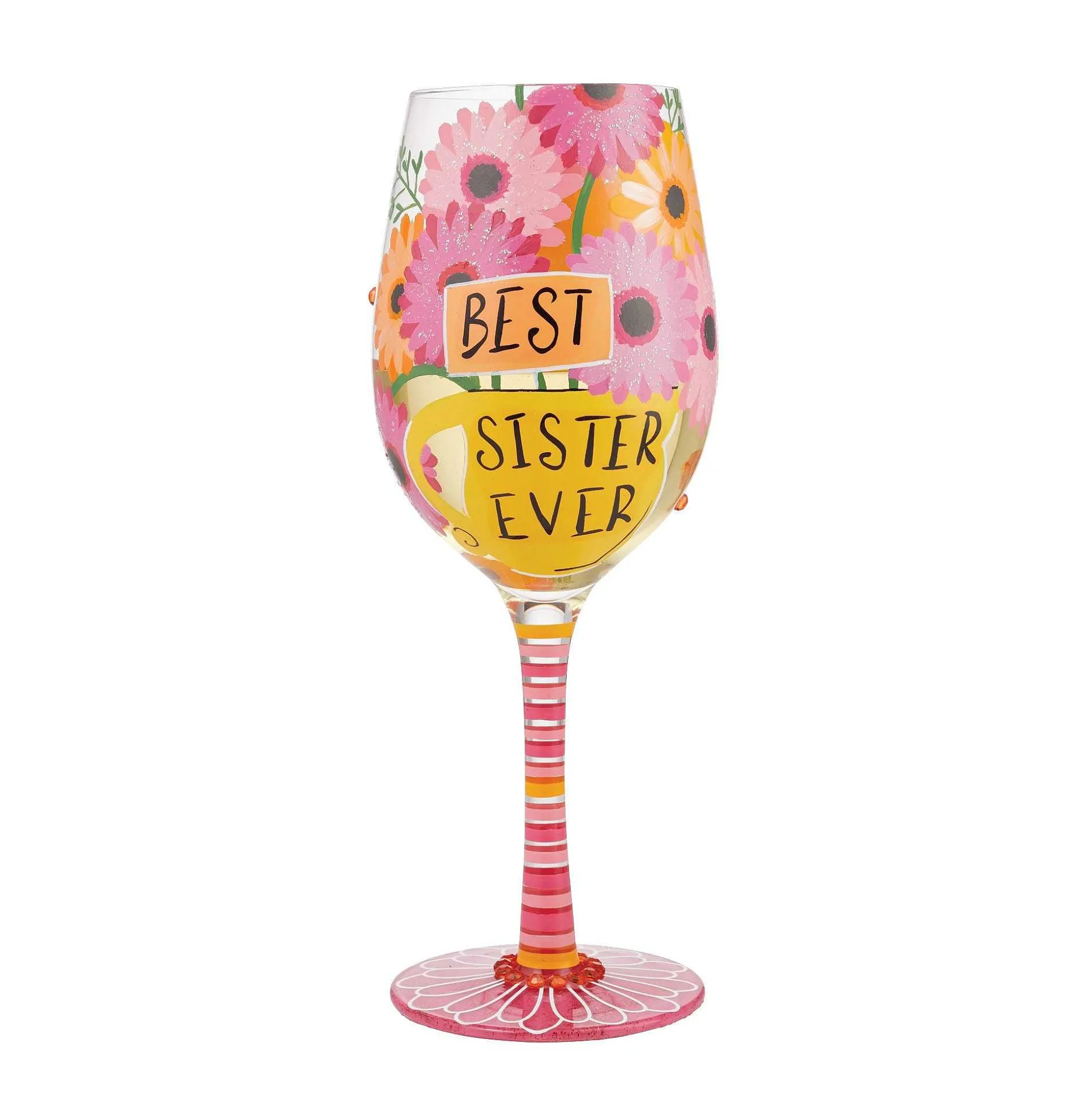 This Lovely 15 Oz Wine Glass Is A Marvel Of Color And Care. This Gorgeous Glass Will Serve As A Beautiful Reminder Of Love To The Special Woman In Your Life. Illuminated In Bright Flowers, This Goblet Is The Perfect Prop For The Best Sister Ever.